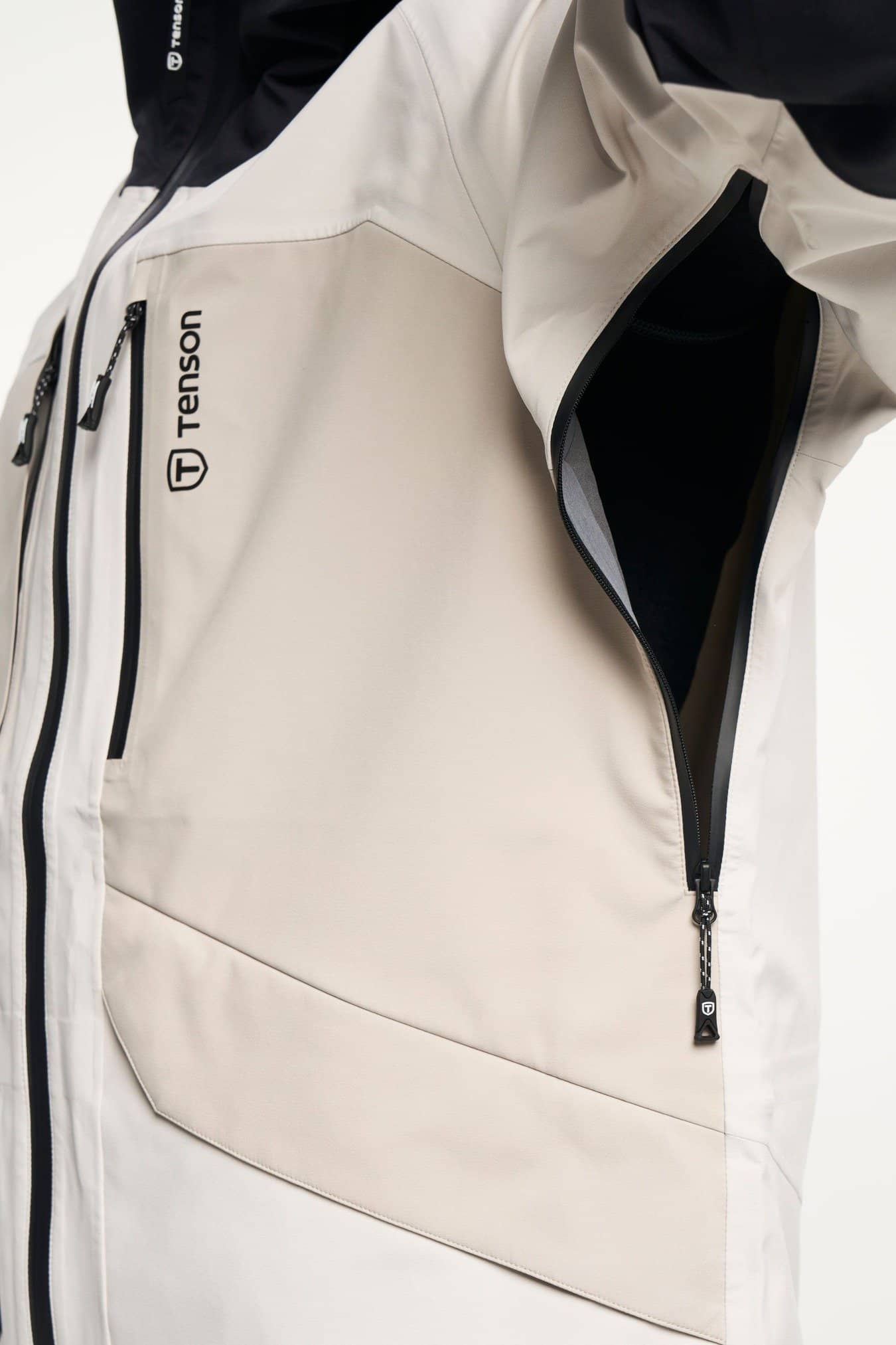 • Adjustable cuffs, Adjustable hem, Adjustable hood vertical and horizontal, Articulated sleeves, Fixed hood, Fleece inside collar, Folded chinguard, Helmet compatible hood, High collar, Inner pocket with zip, Laminated brim, Ski pass pocket, Snow skirt: removable with zip, Taped seams, Two chest pockets with zippers, Two front pockets with zippers, Water repellent zippers, Velcro-adjustable sleeve straps, Ventilation under arm