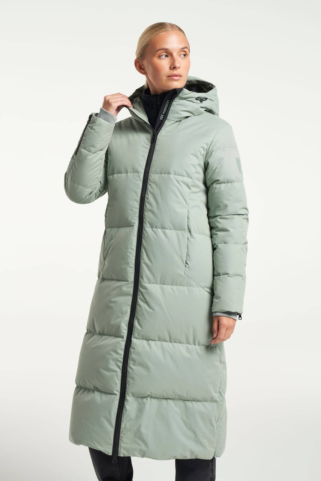 Meet the winter season in a timeless long parka crafted with cozy, soft polyester and a powdery, brushed finish that will stand the test of all elements. It is padded with RDS certified down (500 fill power) with a fluffy 80/20 down-to-feather ratio, giving you all the benefits of down without compromising on our nature. Shanna has a sleek a-lined silhouette and a minimalistic look with black details and designer oversized zippers, on the front, sides and sleeves. Comes with E-dye polyester lining and a PFC free water-repellent finish.