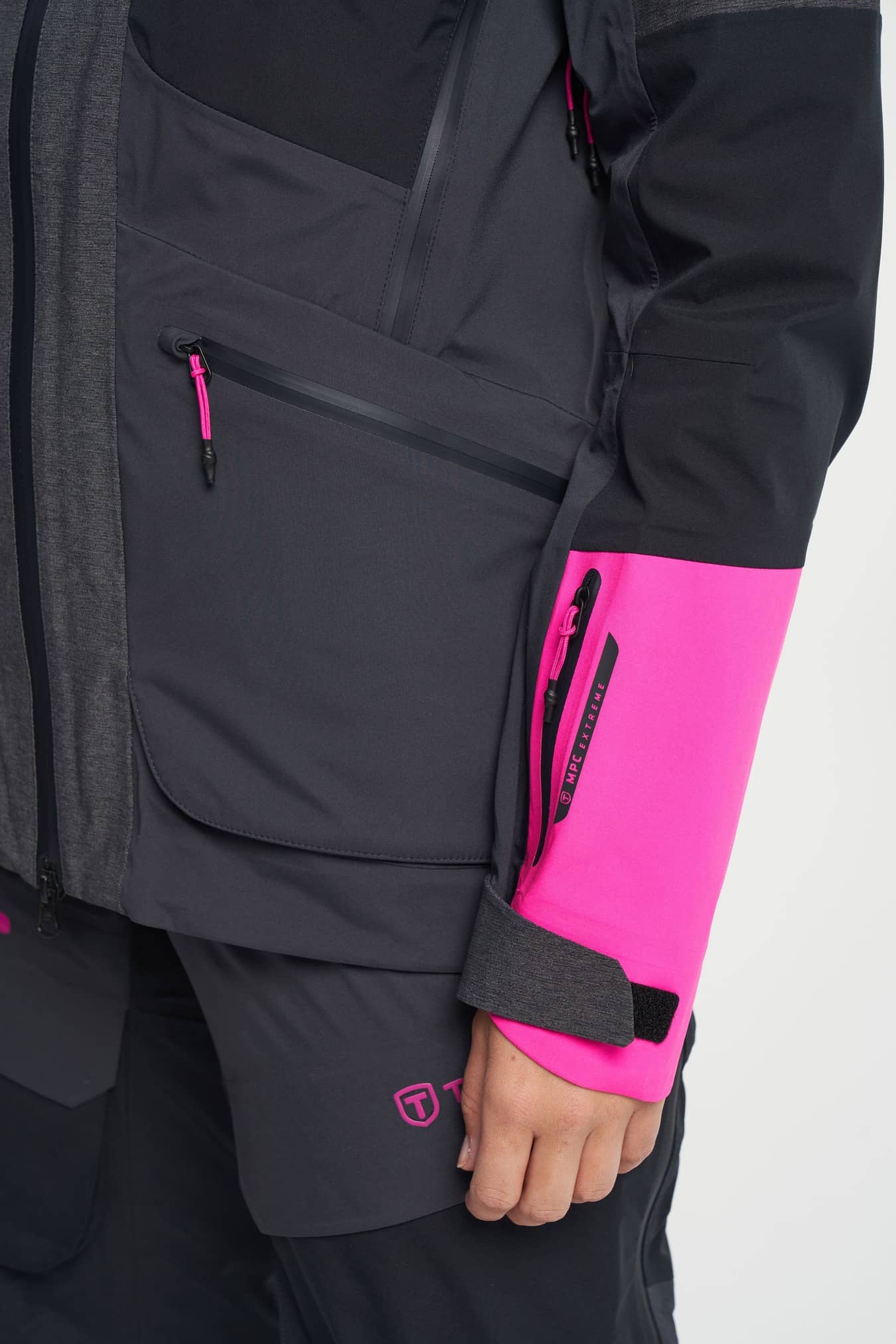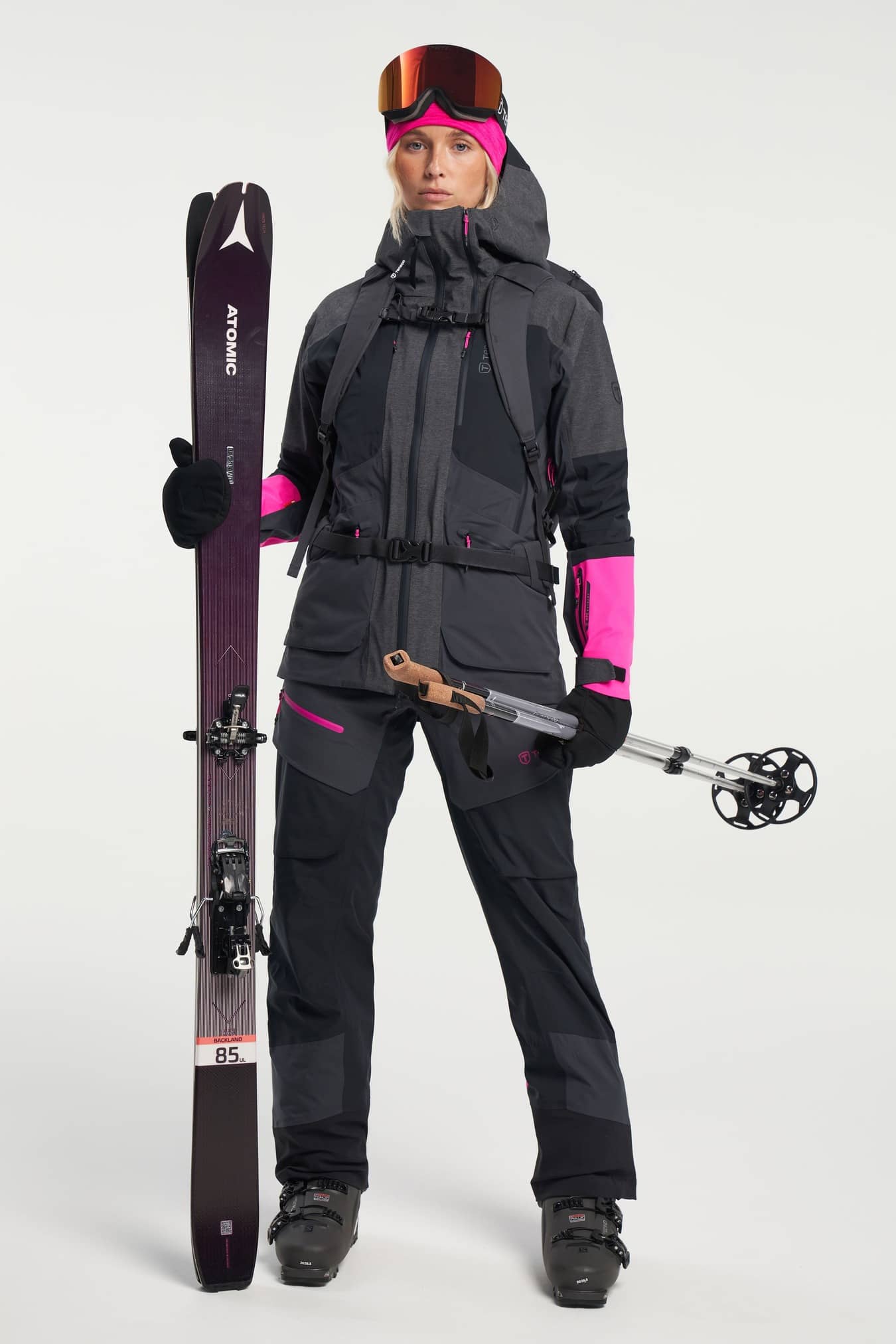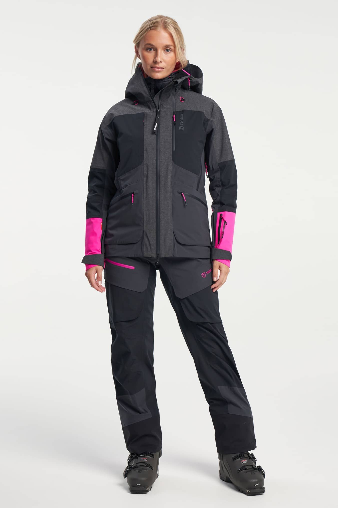 This women’s Ski Touring jacket is designed to withstand whatever weather conditions you come up against on a top tour or on the slopes. It is a windproof and waterproof shell jacket with taped seams to protect against rough weather and has a big hood with room for your helmet. The soft three-way stretch allows for a full range of movement and the ventilation helps you regulate your temperature throughout the day. The Ski Touring jacket is waterproof powered with Tenson’s proprietary MPC Extreme technology (WP 20.000mm / MP 20.000 g/m2/24h) which combines extremely effective waterproofing with exceptional breathability. The high collar provides protection from the wind for downhill skiing. This item has all the smart details that make for a perfect touring jacket, including adjustable cuffs, articulated sleeves, ventilation, a ski pass pocket, and the RECCO Rescue system. In addition, this jacket also has a total of six pockets – two in the front, two chest pockets and two inside. It is made of a smooth and highly comfortable lightweight stretch fabric that allows for a full range of movement… oh, and did we say it is absolutely littered with smart design features and comes with a PFC free water-repellent finish.