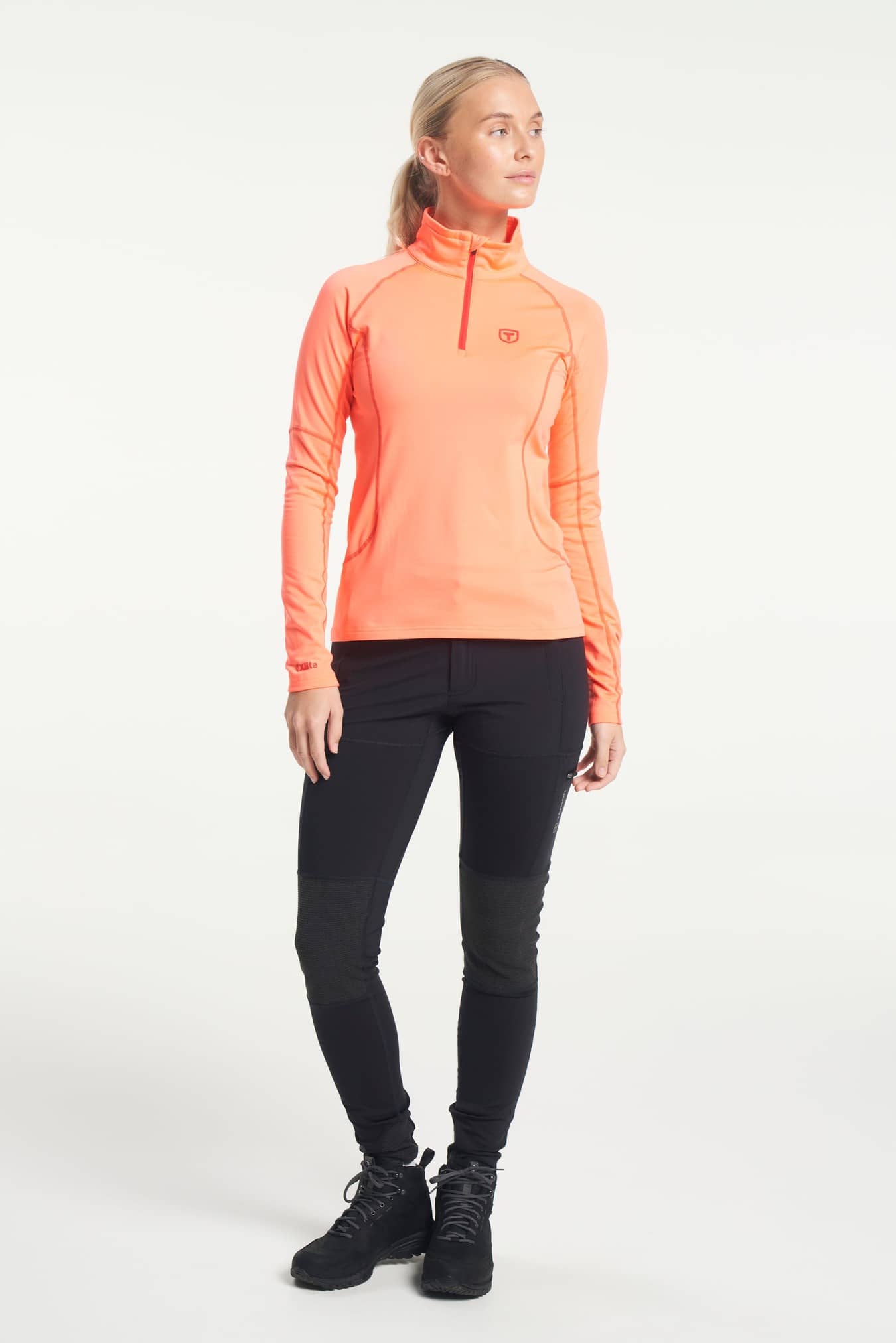 This thin mid-layer, or base layer depending on your preference, provides warmth without being too bulky. Made in a comfortable, stretchy Power Comfort™ fabric – 90% polyester and 10% elastane – it is stretchy and quick-drying, keeping you agile during outdoor activities. It comes with a folded chin guard, articulated arms, and mesh ventilation at the center of the back.
