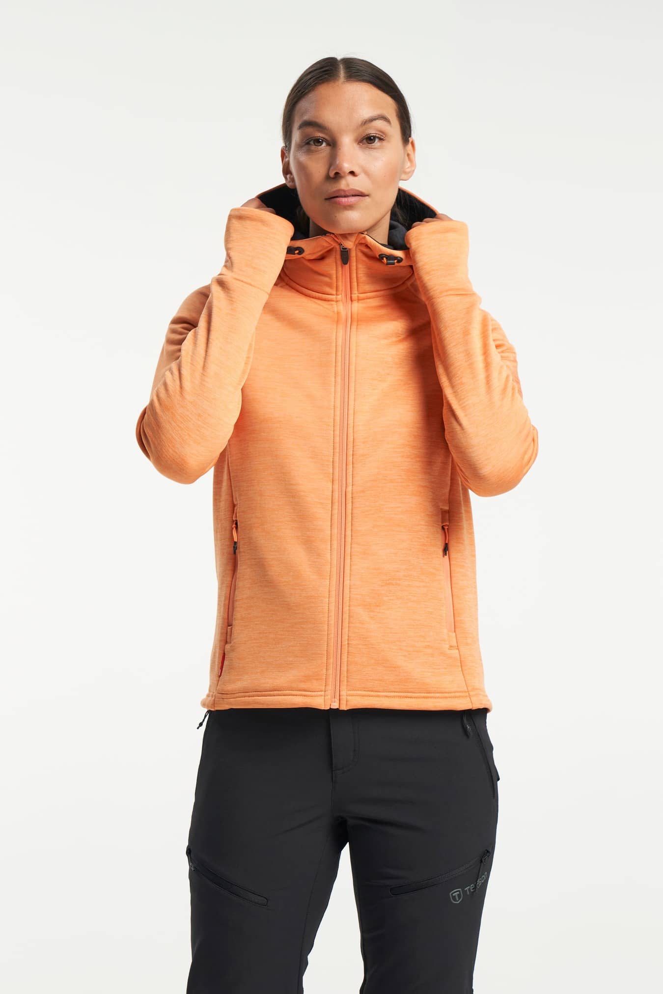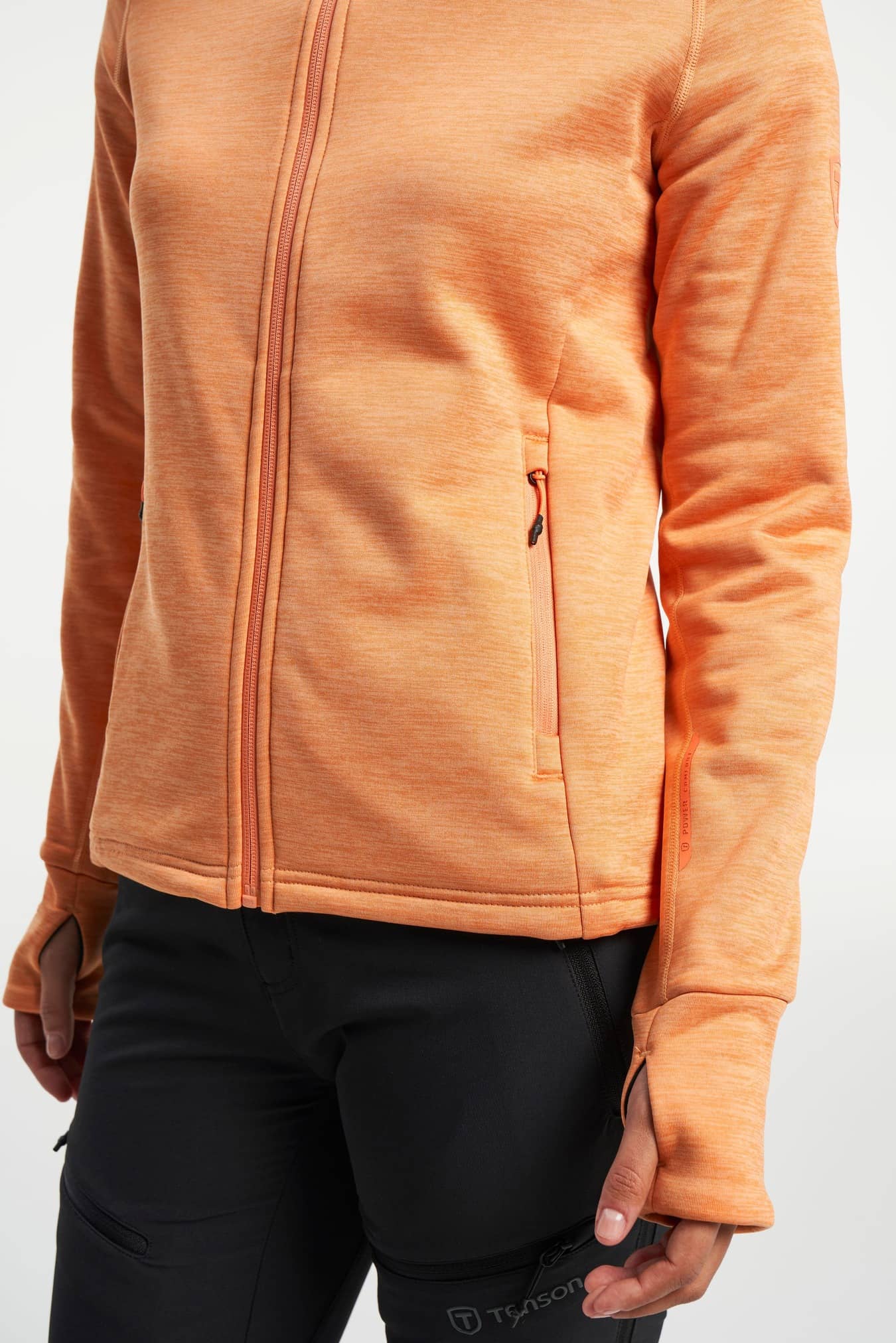 TXlite Hoodie Zip is a women’s zip hoodie with a perfect fit. It's super stretchy and really comfortable to wear. The hood and the hem are adjustable and the zip has a folded chin guard. If you want to wear it as a mid-layer the extended sleeves with thumb loops will prevent the arms from getting caught under your jacket. It also has two front zip pockets to make sure you don't lose your things. Wear it as a comfy hoodie or as a light jacket in town or during outdoor activities.