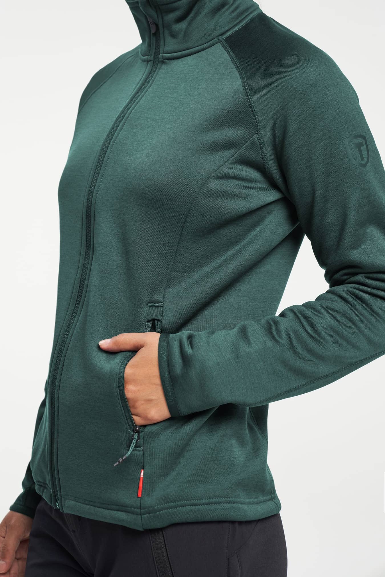 This women's zip-up mid-layer is made from quick-drying, stretchy and flexible PowerComfort™ fabric to keep you warm under a shell jacket. The mid-layer features a collar that keeps the cold away from your neck. The zipper is equipped with a chin guard that prevents it getting stuck when pulled all the way up. The mid-layer also has two pockets on the front, both with zippers, where things can be stored without falling out, so you can easily take your belongings with you. Besides being used as a mid-layer, it is perfect on its own on cold spring days or late summer evenings.