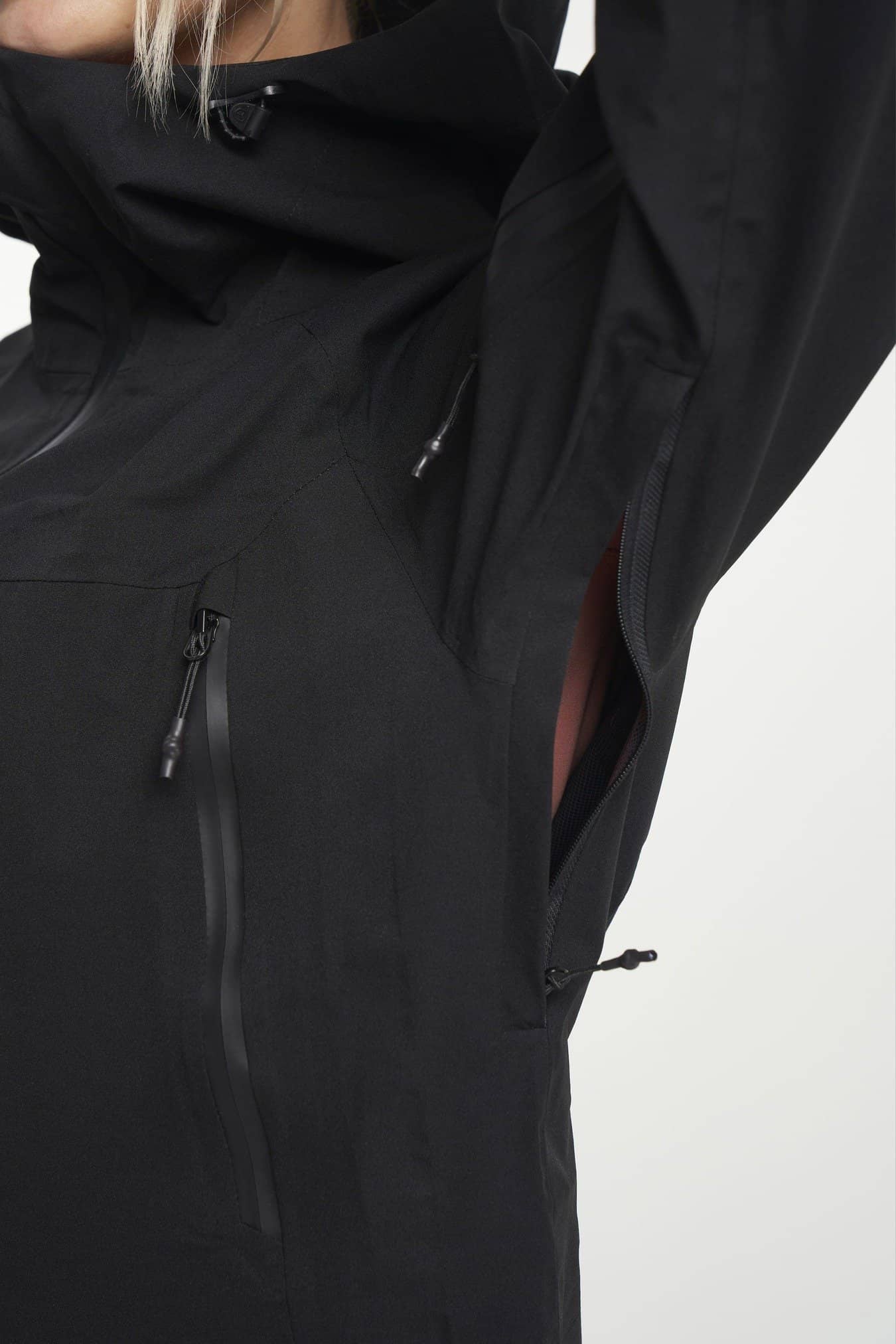 Adjustable cuffs, Adjustable hem, Adjustable hood vertical and horizontal, Adjustable waist, Fixed hood, Inner pocket, Taped seams, Two chest pockets with zippers, Two front pockets with zippers, Water repellent zippers, Ventilation under arm