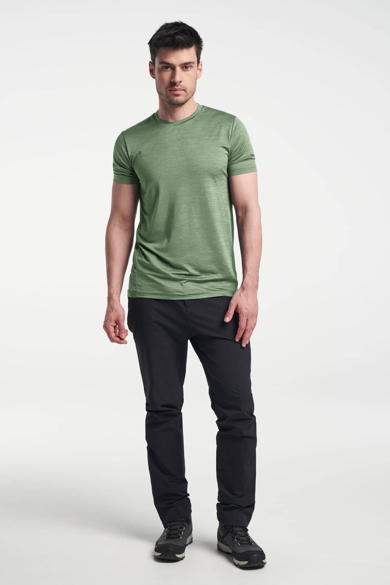 A really nice quick drying work out T-shirt for training, travelling and sports. The material is crease proof which makes it perfect to pack for longer hikings, bike rides or a weekend away. It's made of 87% polyester and 13% elastane which gives this shirt a very stretchy and comfortable feel. Comes in a regular fit with rounded collar.