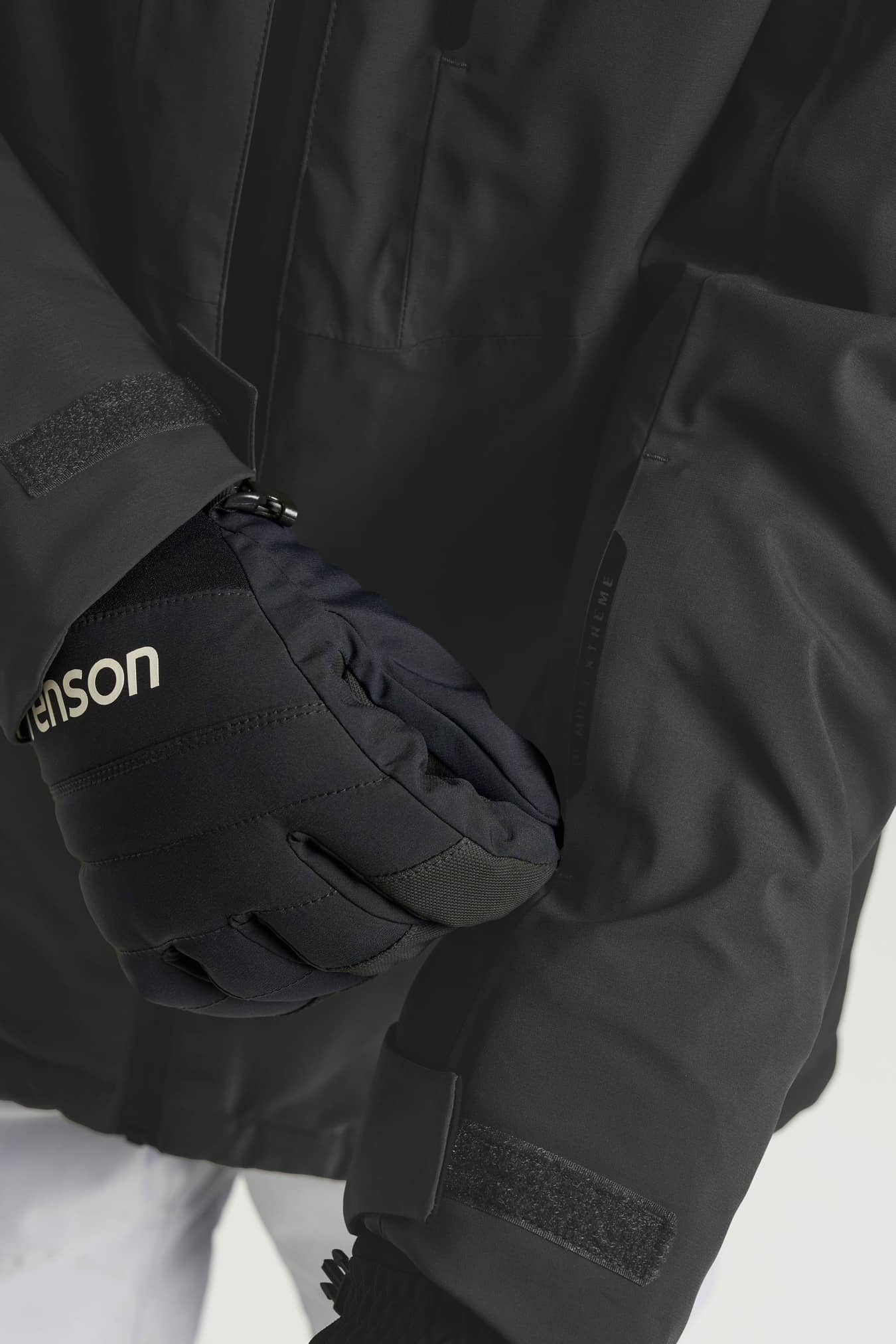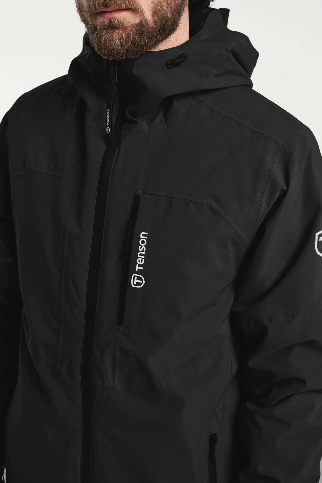 • Adjustable cuffs, Adjustable hem, Adjustable hood, vertical and horizontal, Articulated sleeves, Fixed hood, Folded chinguard, Innerpocket with zip, One sleeve pocket with zipper, RECCO® Rescue system, Taped seams, Two chest pockets with zippers, Two front pockets with zippers, Water repellent zippers, Ventilation under arm