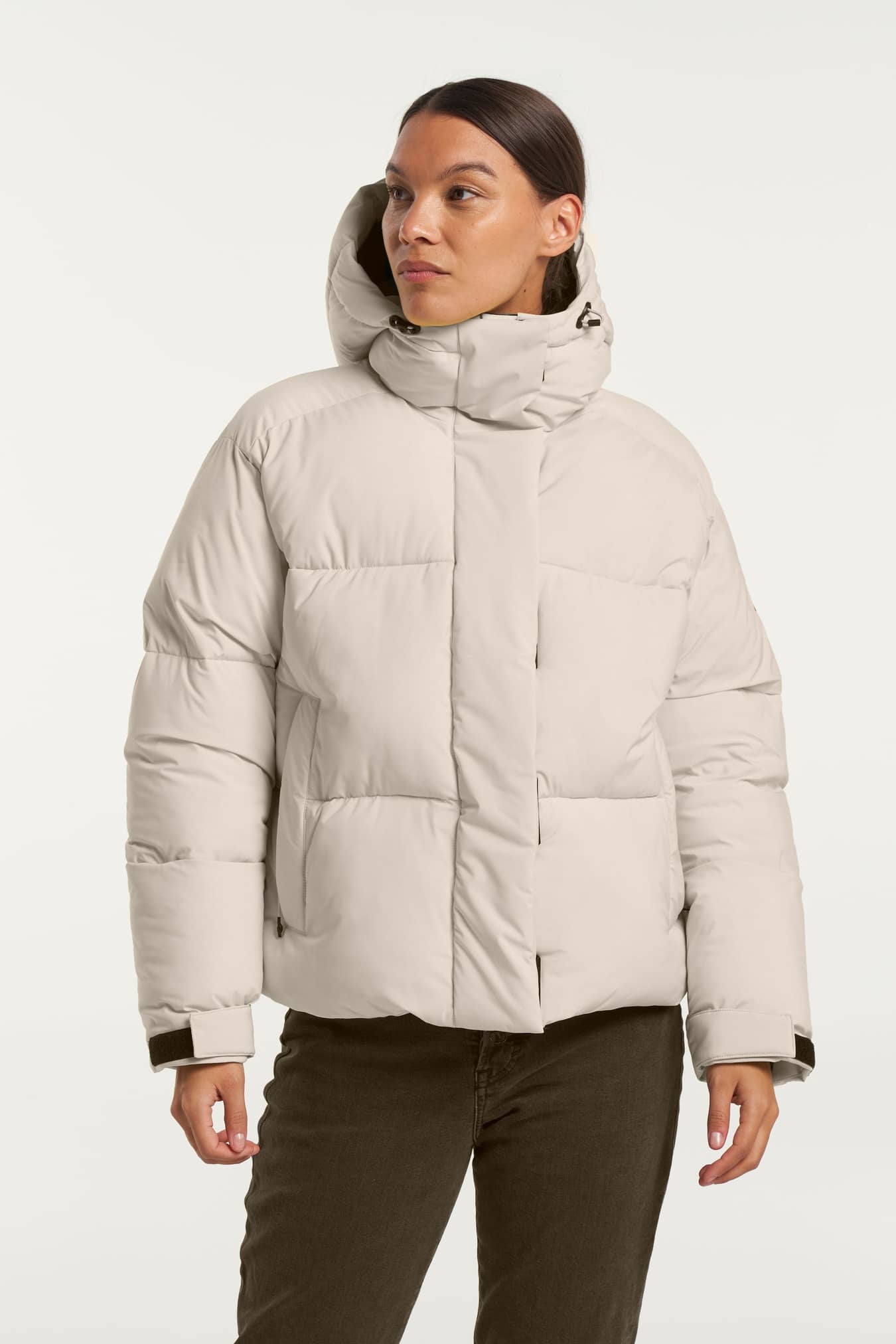 Een modieus kort en volumineus pufferjack van de volgende generatie voor dames. Heeft een hoge trechterkraag, vaste capuchon en licht afhangende schouders. Voorzien van AirPush™ isolatie die zorgt voor dampregulatie met behoud van warmte - zodat je het bij elke temperatuur behaaglijk warm hebt. Wordt geleverd met E-dye polyester voering en een PFC-vrije waterafstotende afwerking.