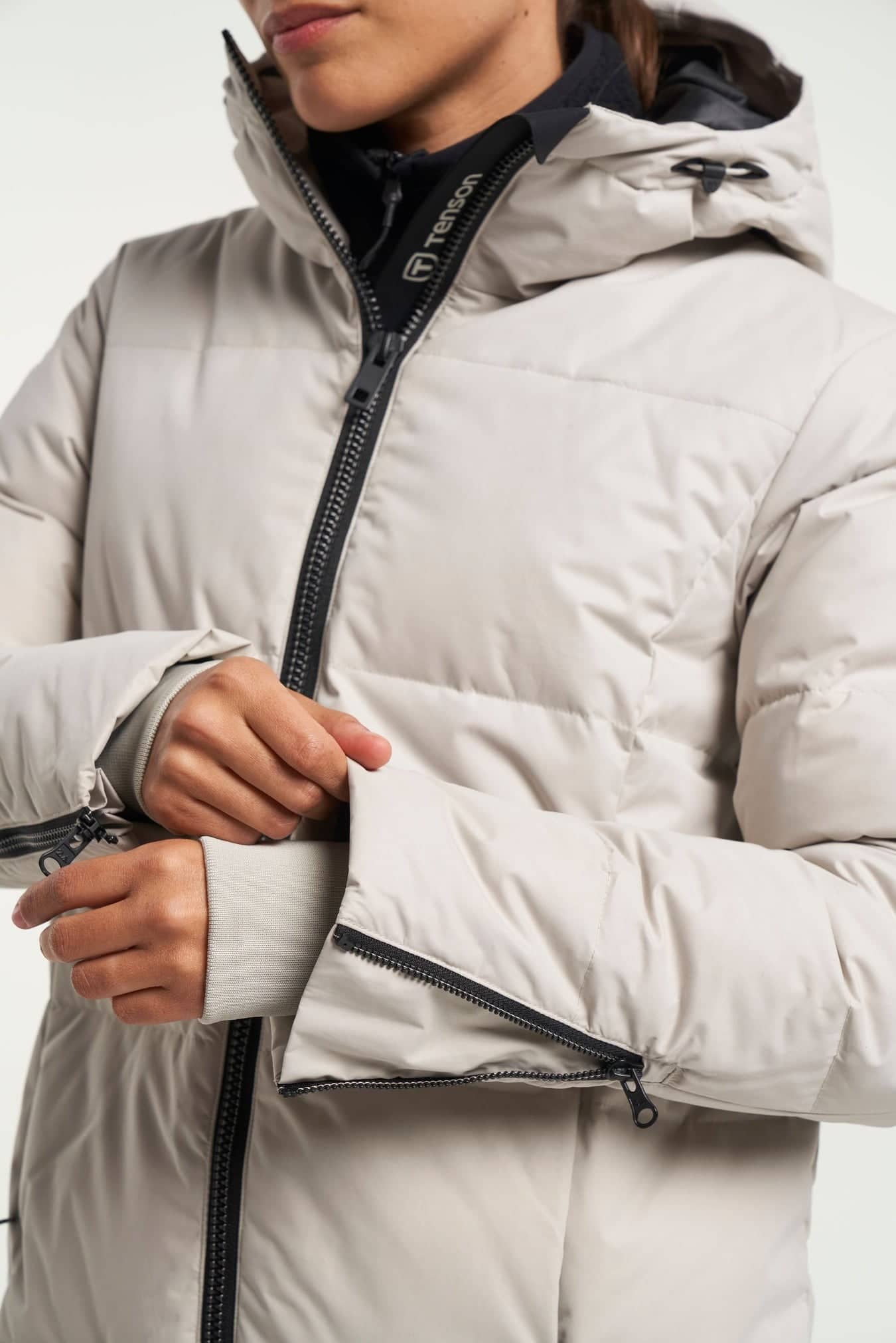 2 way zip, Adjustable hood, vertical and horizontal, Adjustable sleeve hem with slits and zippers, E-dye Polyester lining, Fill Power 500, Fixed hood, Inner cuffs at sleeves in rib, Inner pocket with zip, Insulation: Duckdown 80/20, RDS certified down, Sidezippers at hem, Two front pockets with zippers