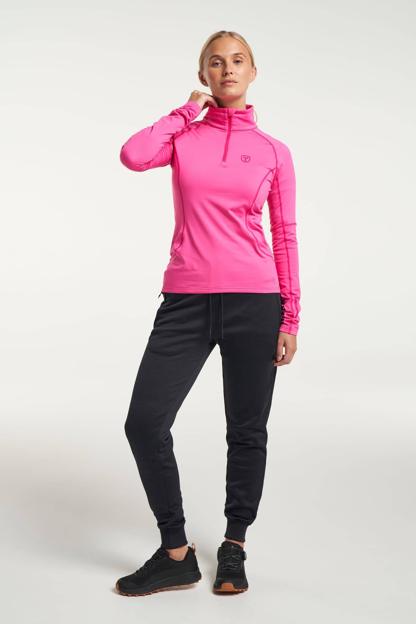 Deze dunne middenlaag of basislaag, afhankelijk van je voorkeur, zorgt voor warmte zonder te volumineus te zijn. Gemaakt van een comfortabele, rekbare Power Comfort™-stof – 90% polyester en 10% elastaan – is rekbaar en sneldrogend, waardoor je wendbaar blijft tijdens buitenactiviteiten. Het wordt geleverd met een gevouwen kinbescherming, gelede armen en mesh-ventilatie midden op de rug.