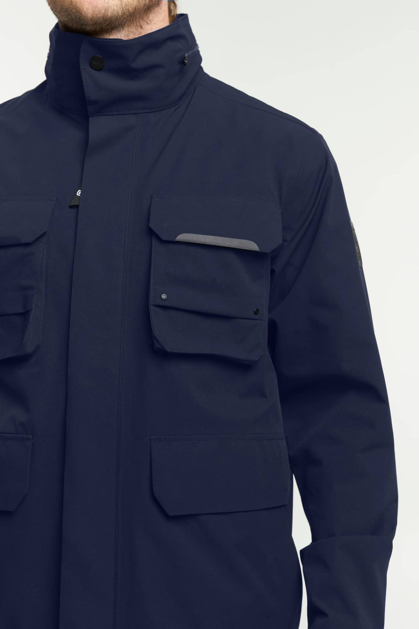 • Adjustable cuffs, Articulated sleeves, Detachable hood inside collar, Inner pocket with zip, Taped seams, Two chest pockets, Two front pockets with zippers