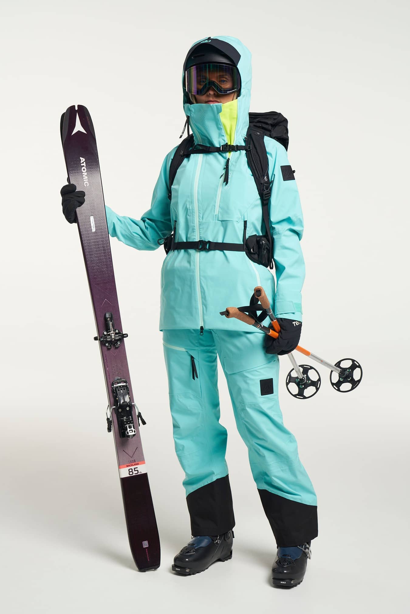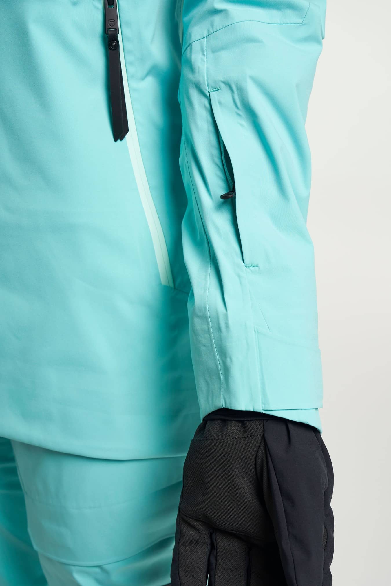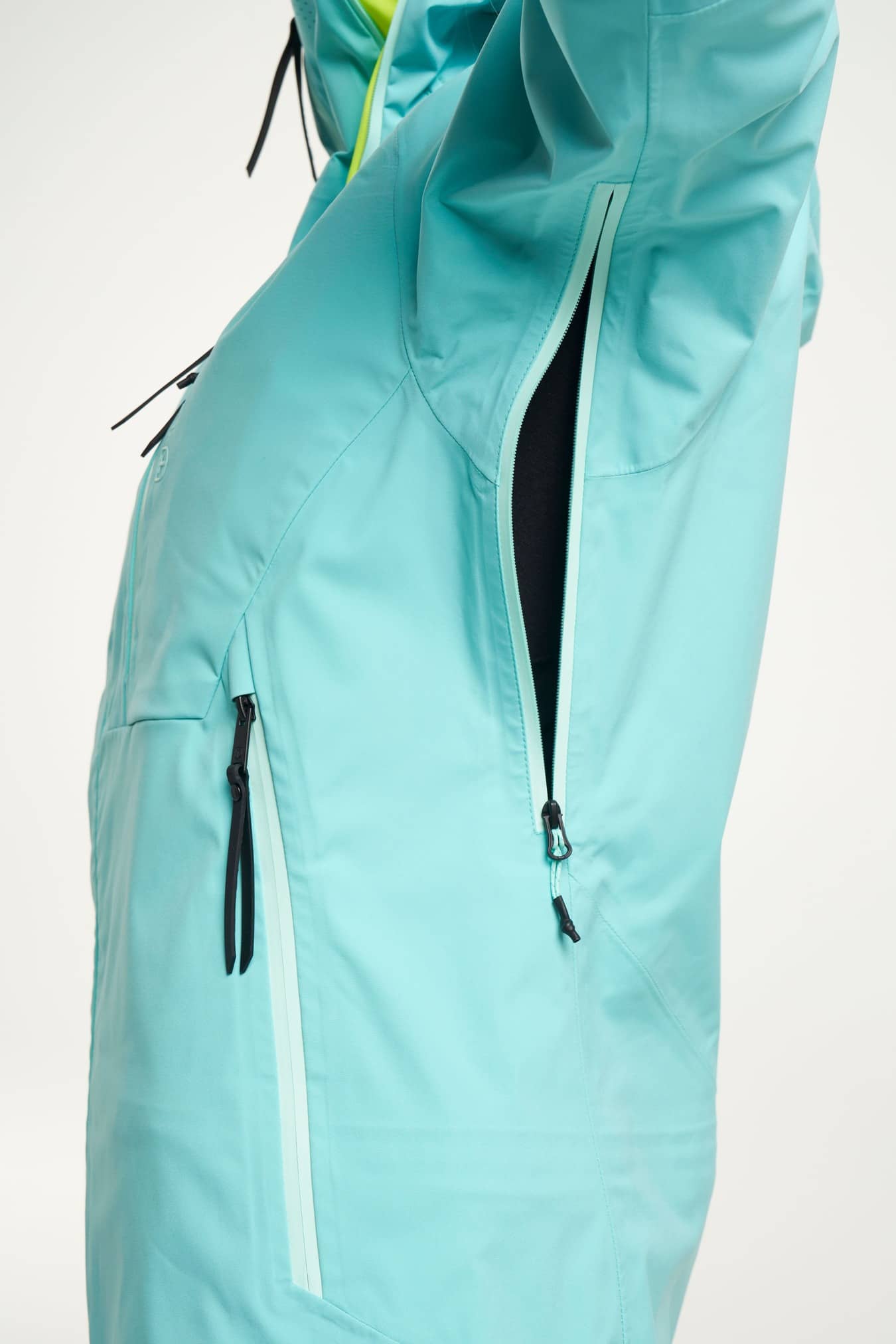 • 2 way zip, Adjustable cuffs, Adjustable hem, Adjustable hood vertical and horizontal, Articulated sleeves, Extension zip for back protection and helmet, Fixed hood, Fleece inside collar, Folded chinguard, Helmet compatible hood, High collar, Innerpocket with elastic mesh, Innerpocket with zip, Laminated brim, Laser-cut ventilation holes on front collar, Lycra cuffs at sleeve end with thumb holes, Neon coloured details for visability, One chest pocket with zipper, RECCO® Rescue system, Ski pass pocket, Snow skirt: removable with zip, Taped seams, Two front pockets with zippers, Water repellent zippers, Velcro-adjustable sleeve straps, Ventilation under arm