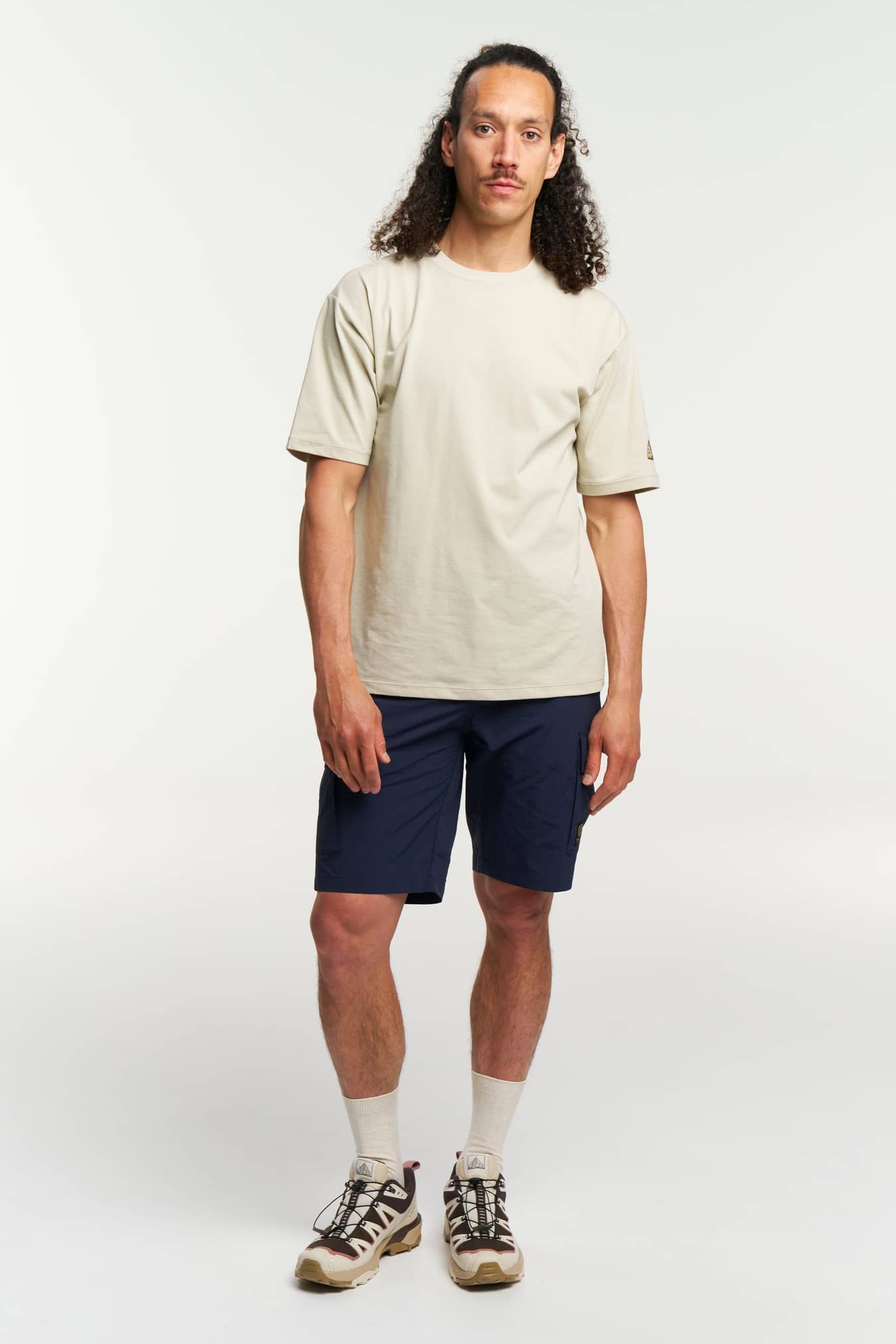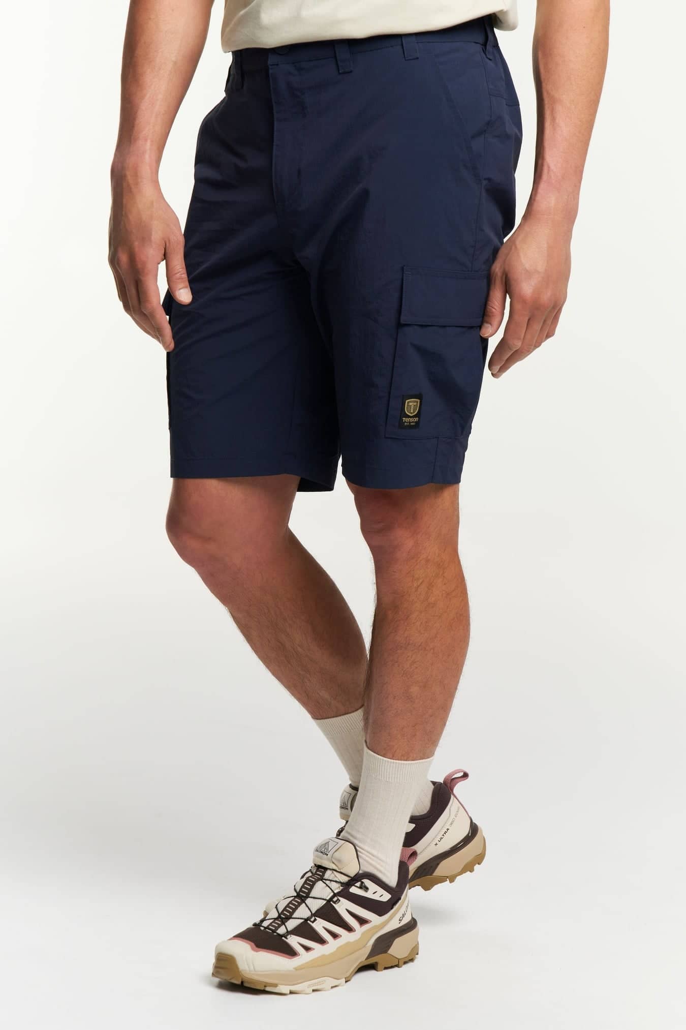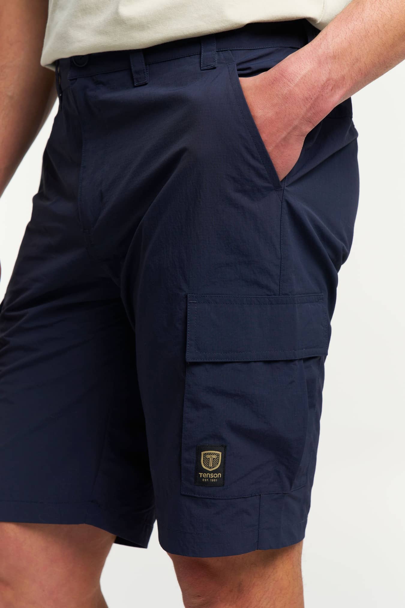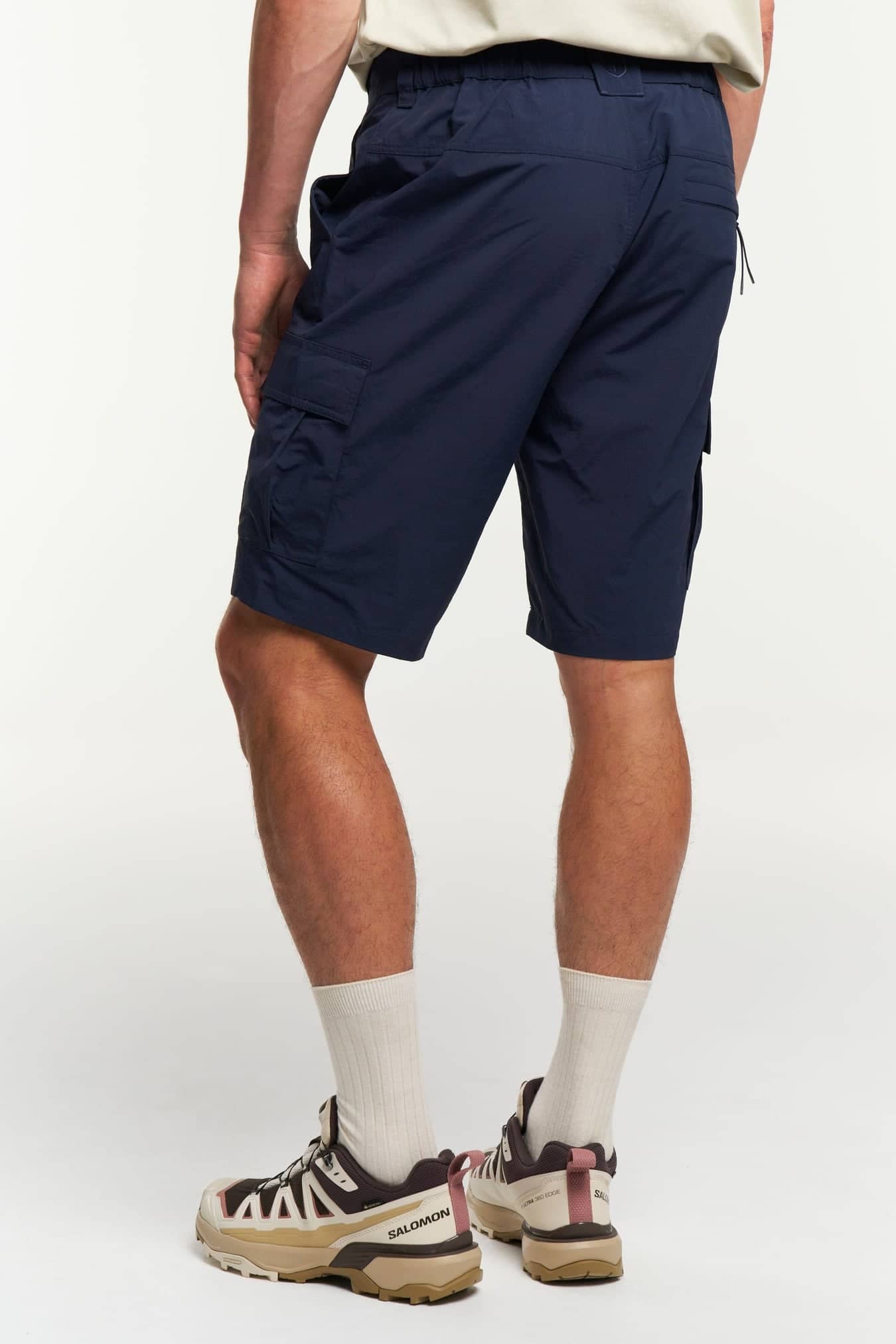 Deze reisvriendelijke cargoshort is gemaakt van duurzaam, sneldrogend gerecycled polyamide en heeft een elastische taille, een achterzak met rits, twee beenzakken en twee schuine open zakken aan de voorkant.