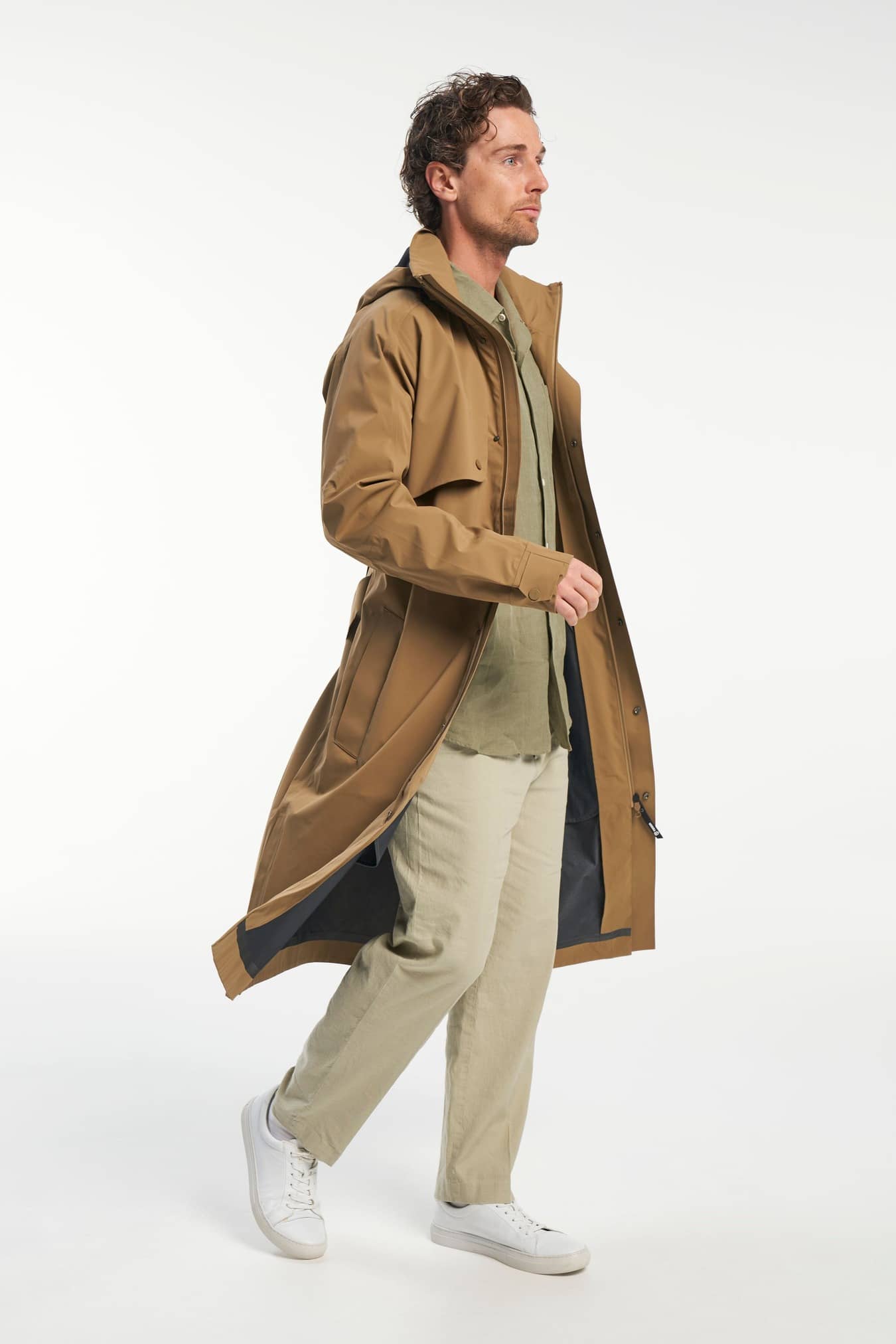Dit is Tensons eigentijdse kijk op de tijdloze trenchcoat – de Trench Nouveau, die zowel eenvoudige functionaliteit als elegantie en veelzijdigheid belichaamt. De jas is gemaakt van 100% gerecycled polyester en bevat door Tensons gepatenteerde MPC Extreme-technologie, getapete naden en waterafstotende ritsen. Hij is wind- en waterdicht met een PFC-vrij waterafstotend oppervlak. De Trench Nouveau is een stijlvol outdoorkledingstuk voor alle weersomstandigheden. Trivia: wist je dat de kakikleurige trenchcoat oorspronkelijk vóór de Eerste Wereldoorlog werd ontwikkeld voor de Britse legerofficieren en populair werd tijdens gebruik in de loopgraven. Hij was oorspronkelijk gemaakt van gabardine en werd vervolgens waterdicht gemaakt met lanoline voordat hij werd geweven. Tegenwoordig is hij voorzien van de gepatenteerde waterdichte MPC-technologie van Tenson, waardoor je het hele jaar door droog en comfortabel blijft, ongeacht de weersomstandigheden.