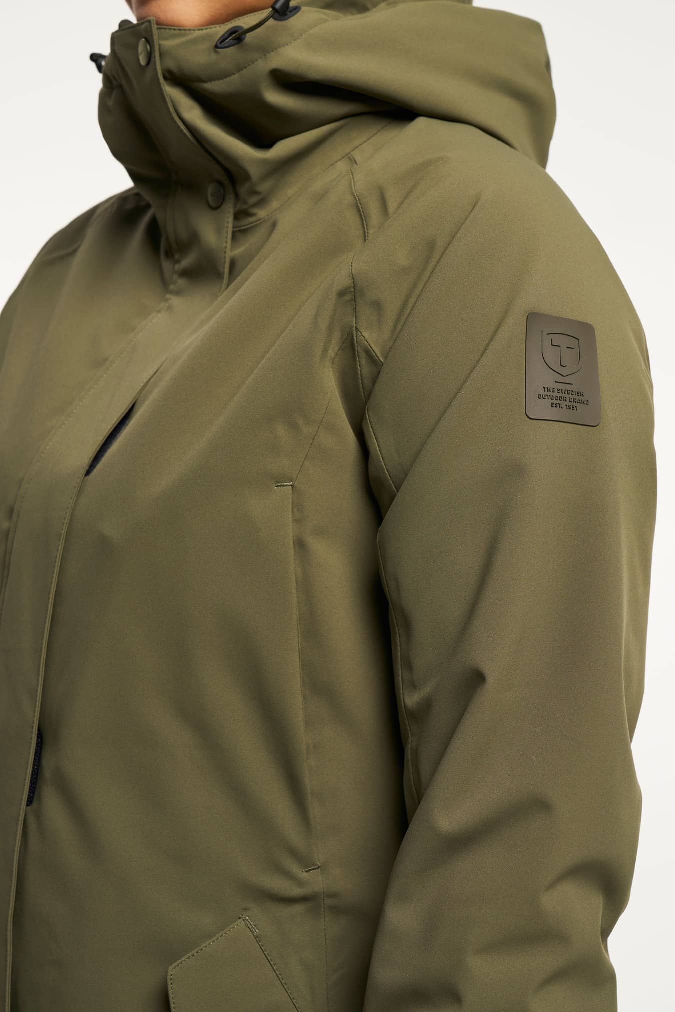 De Trudy Parka is een klassieke waterafstotende parka voor dames met een vaste capuchon. Voorzien van getapete naden en Tenson's gepatenteerde MPC-technologie (WP 5.000 mm / MP 5.000 g/m2/24h) die een zeer effectieve waterdichtheid combineert met een uitzonderlijk ademend vermogen. Op warmere dagen kan de rits aan beide kanten geopend worden voor extra ventilatie. Hij heeft twee voorzakken met rits en kleppen. Wordt geleverd met E-dye polyester voering en een PFC-vrije waterafstotende afwerking.