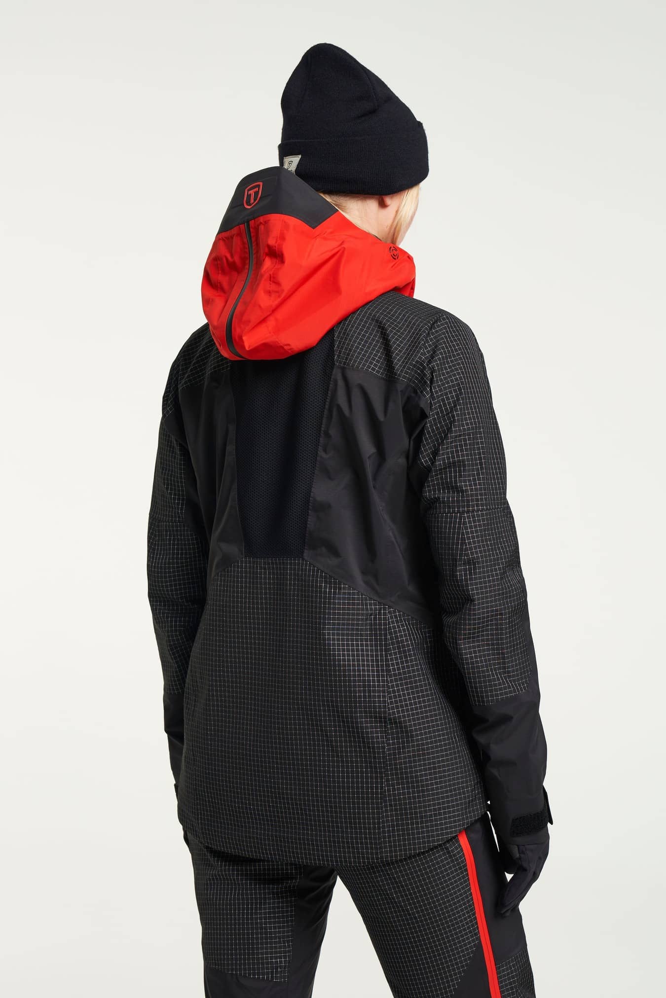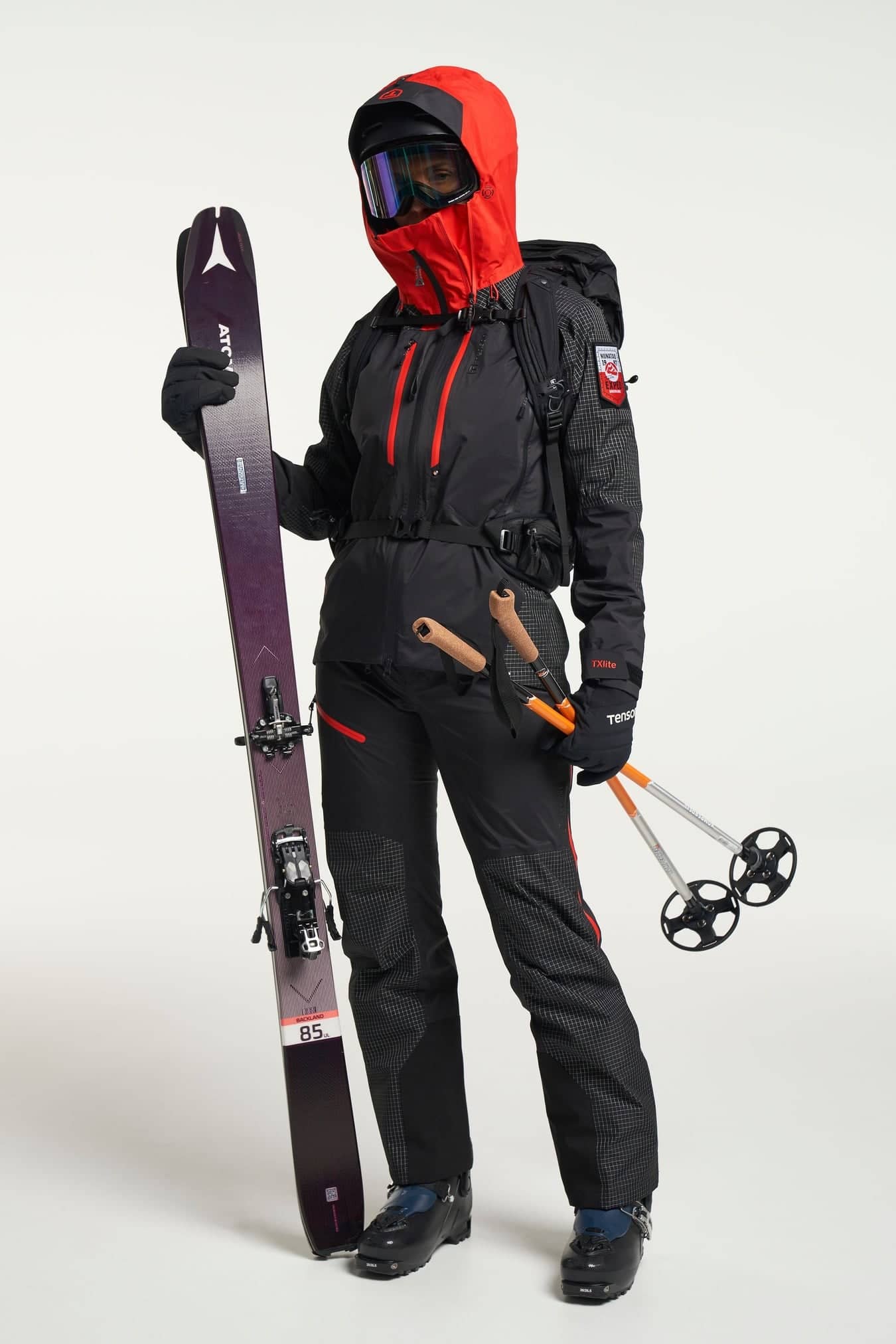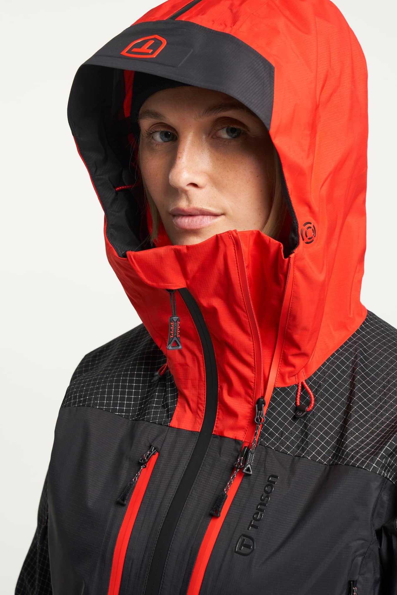 2 way zip, Adjustable cuffs, Adjustable hem, Adjustable hood vertical and horizontal, Articulated sleeves, Extension zip for back protection and helmet, Fixed hood, Fleece inside collar, Folded chinguard, Helmet compatible hood, High collar, Innerpocket with elastic mesh, Innerpocket with zip, Laminated brim, Laser-cut ventilation holes on front collar, Lycra cuffs at sleeve end with thumb holes, RECCO® Rescue system, Ski pass pocket, Taped seams, Two chest pockets with zippers, Two front pockets with zippers, Water repellent zippers, Velcro-adjustable sleeve straps, Ventilation
