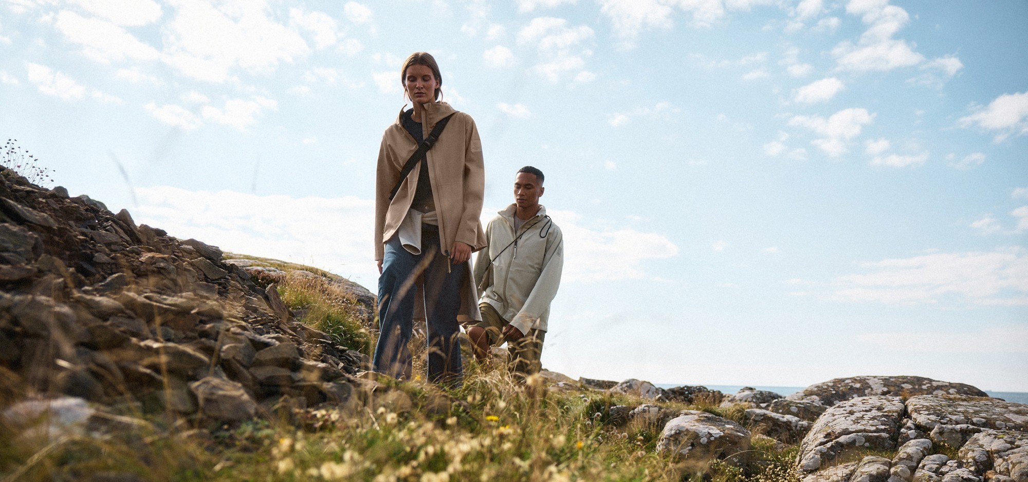 Onze regencollectie is bedoeld voor de dagen waarop de regen komt en gaat. Lichte lagen die wind en regen weerstaan, met slimme details en een strakke, tijdloze vormgeving. Kledingstukken om op te vertrouwen wanneer het weer omslaat.