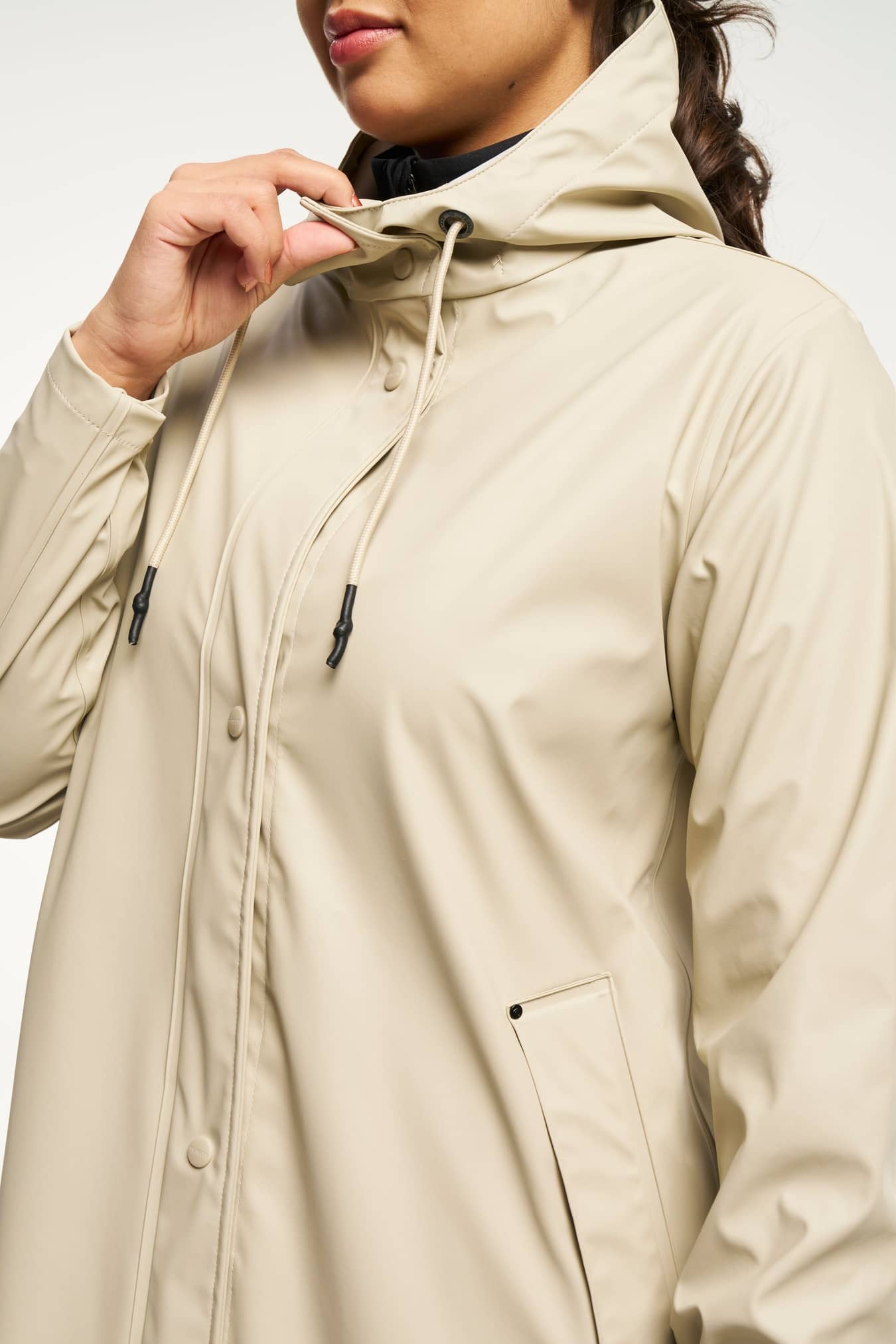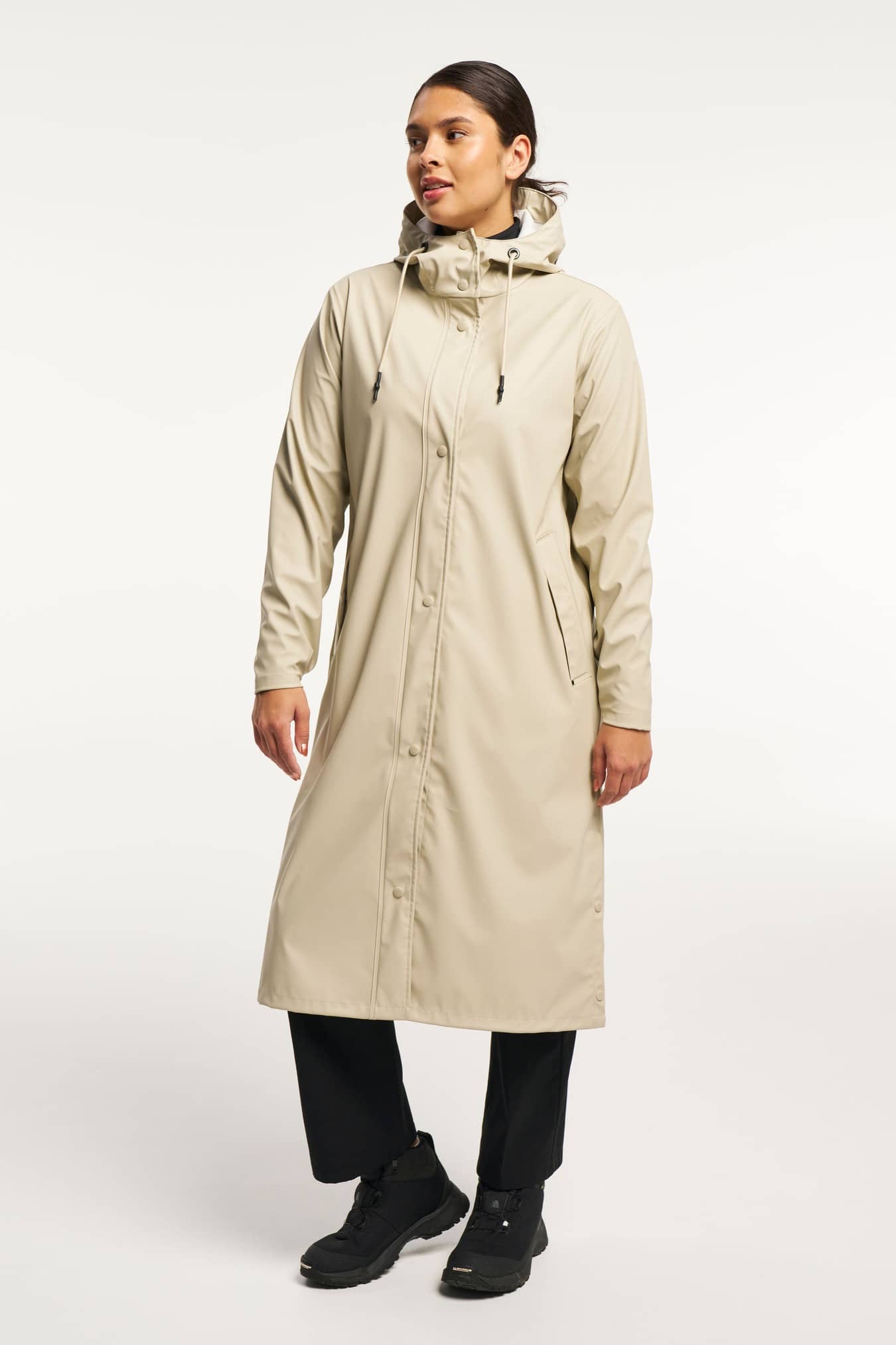 Apelviken Maxi Coat är en lång trendig regnjacka för kvinnor med A-linjeformad silhuett i klassisk stil. Den är gjord av 100% polyuretan med mjuk trikå på insidan, svetsade sömmar och en vattenpelare på 5 000 mm som håller dig torr i de kraftigaste regnskurarna. Regnjackan har justerbara ärmslut och förböjda ärmar för bästa möjliga passform. Med en fast huva och ventilation under armarna.
