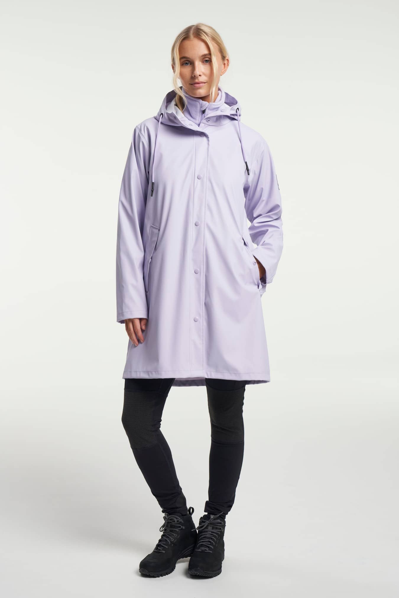 Apelviken är en regnkappa för kvinnor med en a-linjeformad silhuett och en klassisk stilren look. Den är tillverkad av 100% polyuretan med mjuk trikå på insidan, svetsade sömmar och en vattenpelare på 5 000 mm som håller dig torr i de kraftigaste regnskurarna. Regnjackan har justerbara ärmslut och förböjda ärmar för bästa möjliga passform. Kommer med en fast huva.