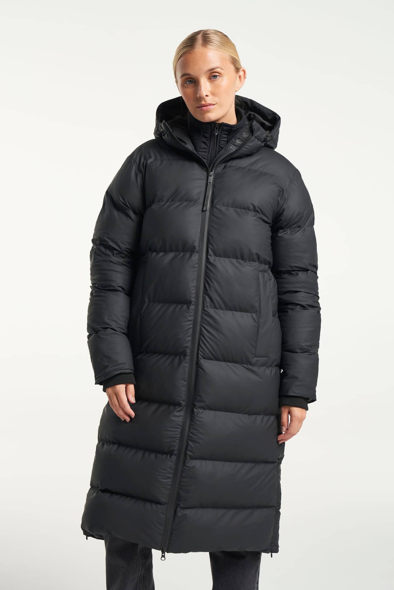 Moderiktig klassisk lång vind- och vattentät puffer-parkas med en rak silhuett. Fodrad med AirPush™ Insulate som är en fjäderlös stoppning som ger lätt vikt och fantastisk isolering för kalla väderförhållanden. Justerbar huva med integrerade stoppers och en hög mjuk krage som skyddar mot den kalla vinden. Rymliga sidofickor med dragkedja och en innerficka med dragkedja för värdesaker. Foder av E-dye polyester och PFC-fri vattenavvisande ytbehandling.