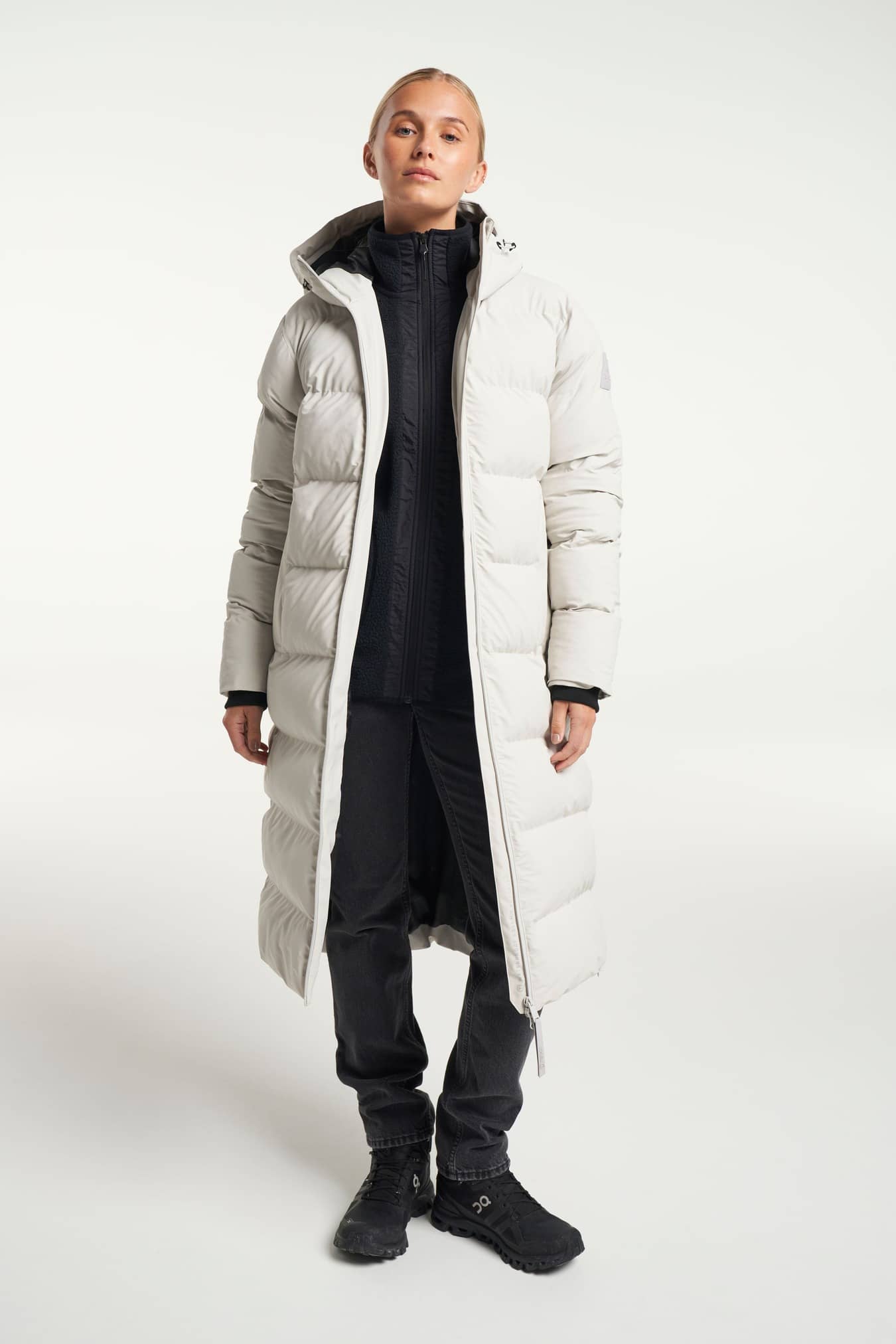 Moderiktig klassisk lång vind- och vattentät puffer-parkas med en rak silhuett. Fodrad med AirPush™ Insulate som är en fjäderlös stoppning som ger lätt vikt och fantastisk isolering för kalla väderförhållanden. Justerbar huva med integrerade stoppers och en hög mjuk krage som skyddar mot den kalla vinden. Rymliga sidofickor med dragkedja och en innerficka med dragkedja för värdesaker. Foder av E-dye polyester och PFC-fri vattenavvisande ytbehandling.