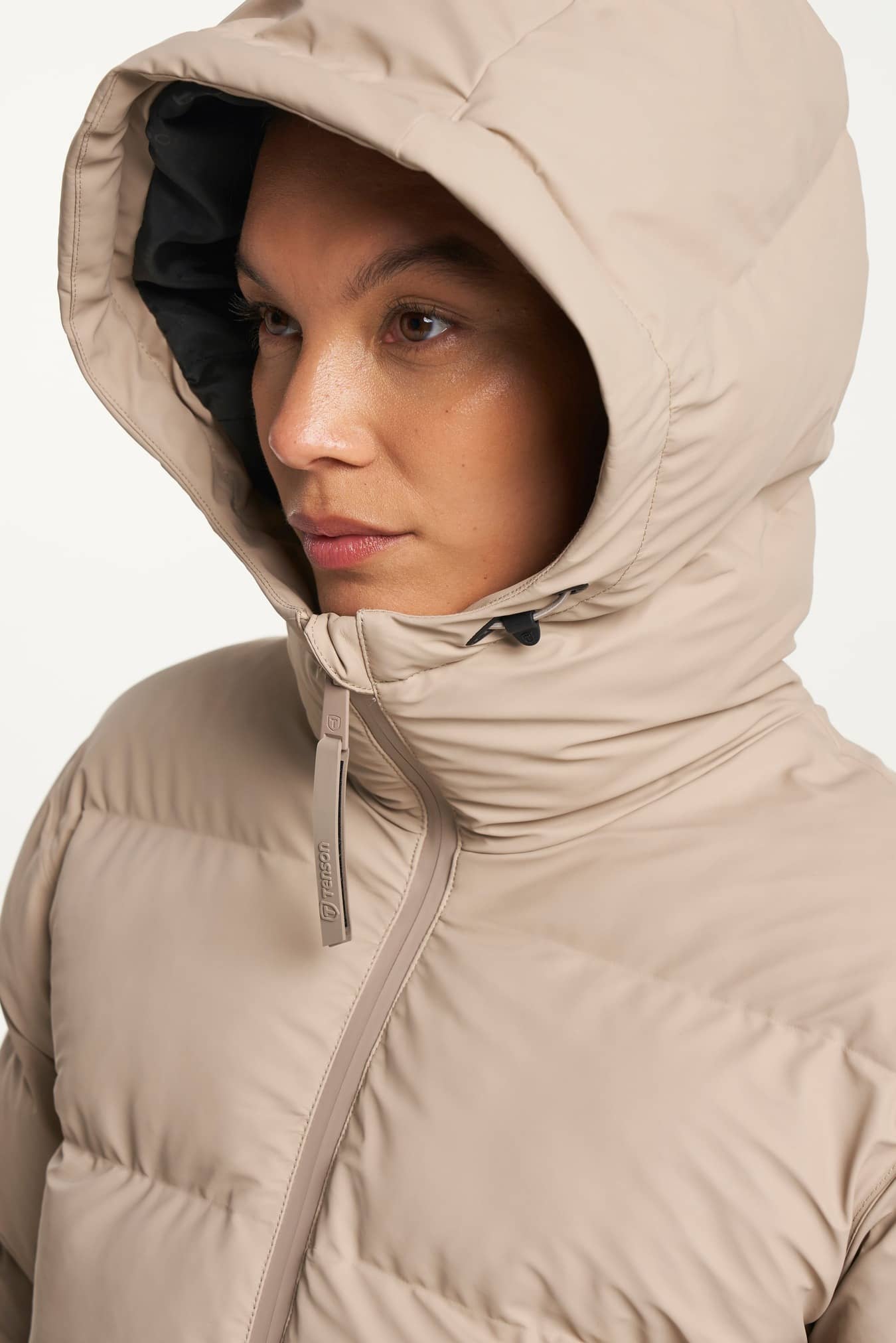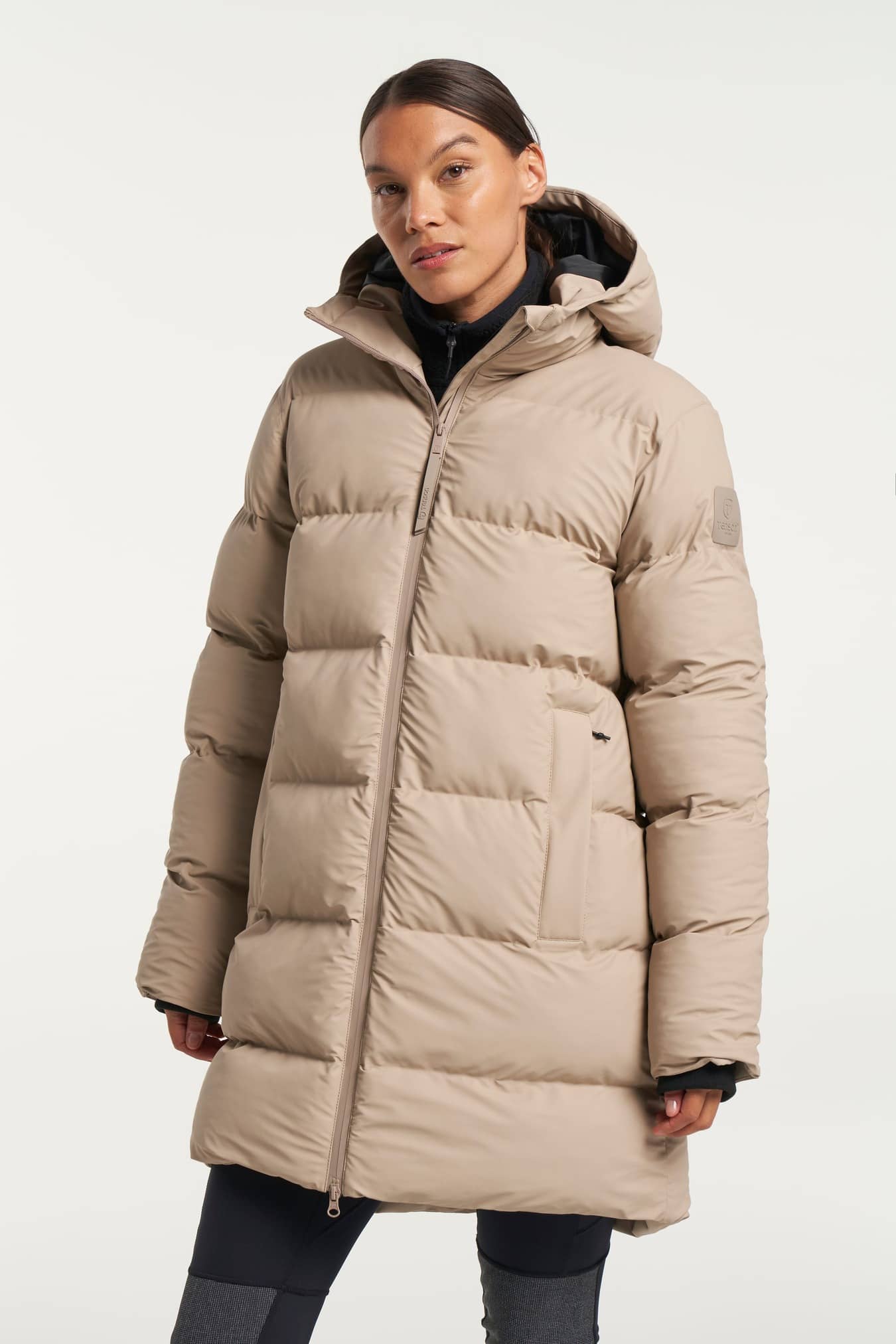 Moderiktig klassisk lång vind- och vattentät puffer-jacka med en rak silhuett. Fodrad med AirPush™ Insulate som är en fjäderlös stoppning som ger lätt vikt och fantastisk isolering för kalla väderförhållanden. Justerbar huva med integrerade stoppers och en hög mjuk krage som skyddar mot den kalla vinden. Rymliga sidofickor med dragkedja och en innerficka med dragkedja för värdesaker. Foder av E-dye polyester och PFC-fri vattenavvisande ytbehandling.