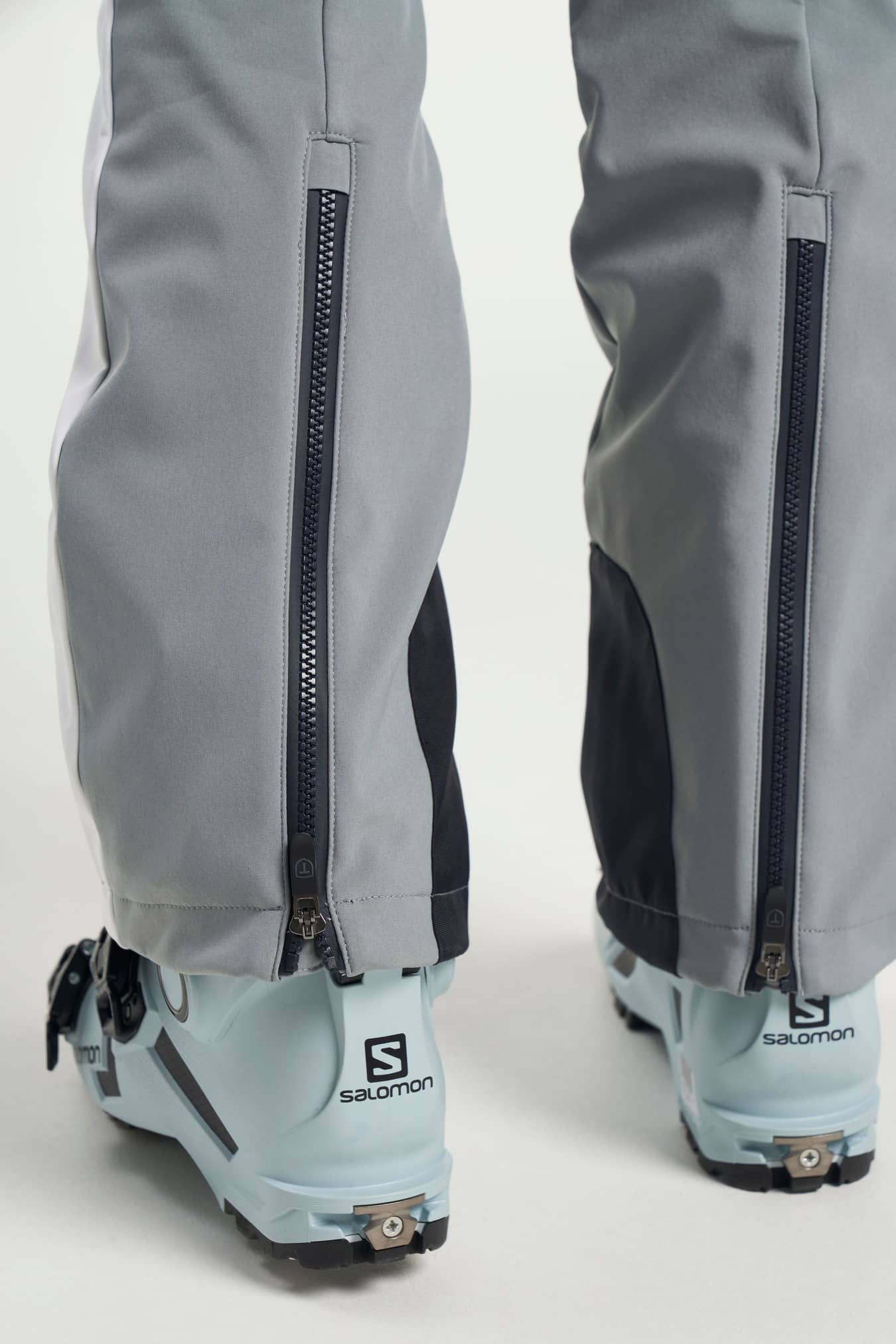 Grace Softshell SkiPants är moderiktiga softshell skidbyxor som ger en elegant och stilren silhuett. Elastisk och justerbar midja med extra rörelsefrihet tack vare det stretchiga, vattenavvisande och vindtäta softshell-tyget. Två framfickor med dragkedja, dragkedja i benavslut, vadderade knän, snölås i benavslut och vattenavvisande dragkedjor.
