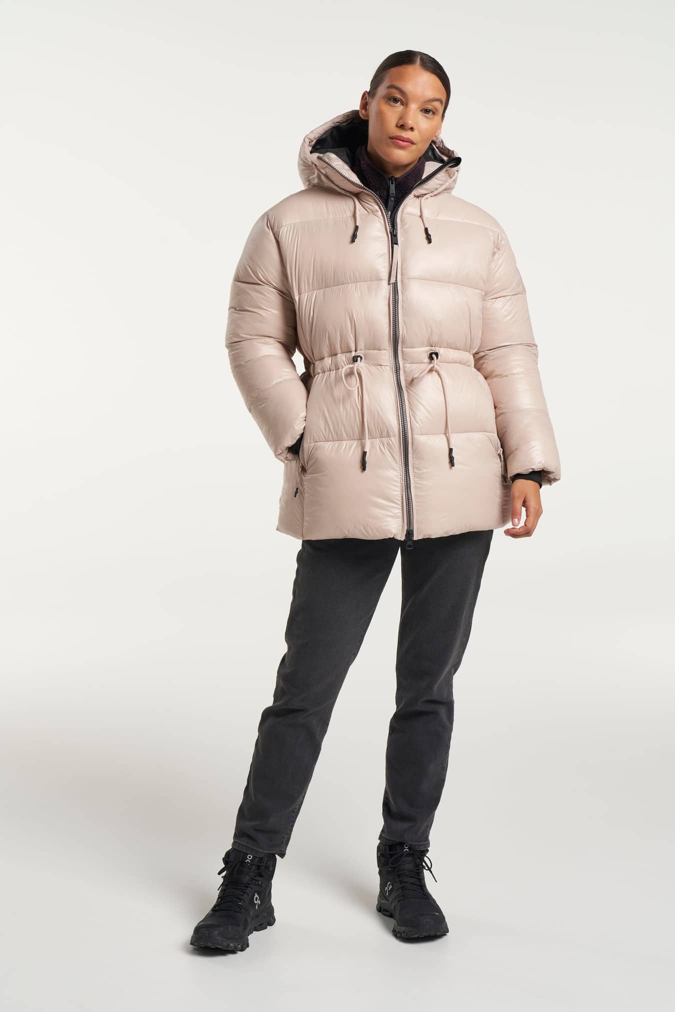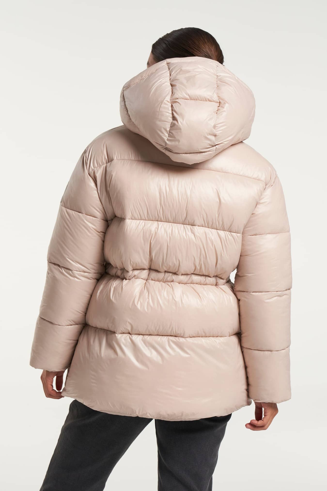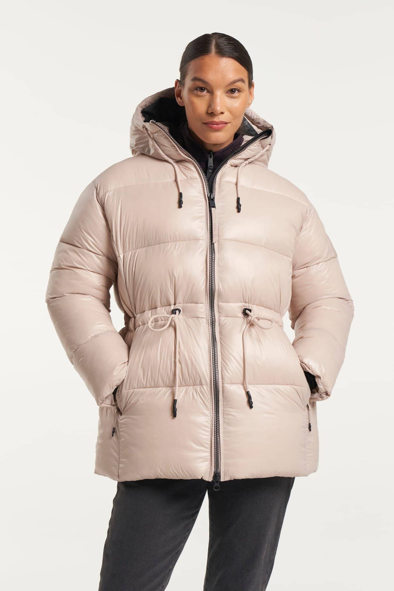 Moderiktig klassisk lång vind- och vattentät puffer-jacka med en A-linje silhuett och dragsko i midjan. Fodrad med AirPush™ Insulate som är en fjäderlös stoppning som ger lätt vikt, utmärkt andningsförmåga och fantastisk isolering för kalla väderförhållanden. Justerbar huva med integrerade stoppers och en hög mjuk krage som skyddar mot den kalla vinden. Rymliga sidofickor med dragkedja och en innerficka med dragkedja för värdesaker. Foder av E-dye polyester. PFC-fri vattenavvisande ytbehandling.