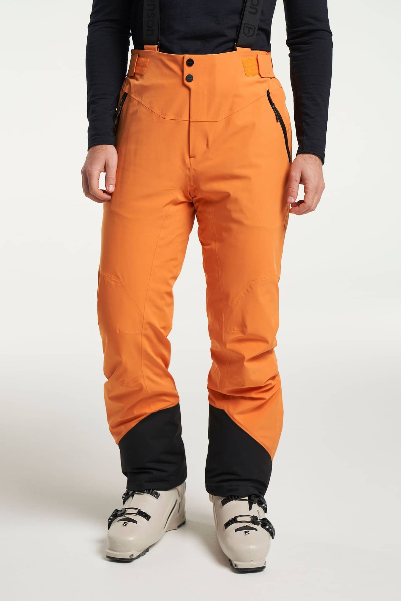 Prime Pro SkiPants med Tensons egenutvecklade MPC Extreme-material är ett par klassiska skidbyxor i en tidlös och avslappnad design. De gör att du känner dig bekväm i snöiga, blåsiga och våta förhållanden. För en perfekt passform har SkiPants förböjda knän, en dold elastisk dragsko i midjan och avtagbara hängslen. Anklarna kan justeras med en dragkedja och har även ett snölås. Ett silikongrepp vid benöppningen ger också extra skydd mot snön. Skidbyxorna har två framfickor med vattenavvisande dragkedjor och två bakfickor. Dessa klassiska skidbyxor har extra förstärkning vid anklarna och kommer att hålla i många år. Alla detaljer som knappar, remmar och blixtlås är svarta för en stilren look. Matcha byxorna med Prime Pro Ski Jacket eller Prime Pro Down Jacket för ett perfekt set.