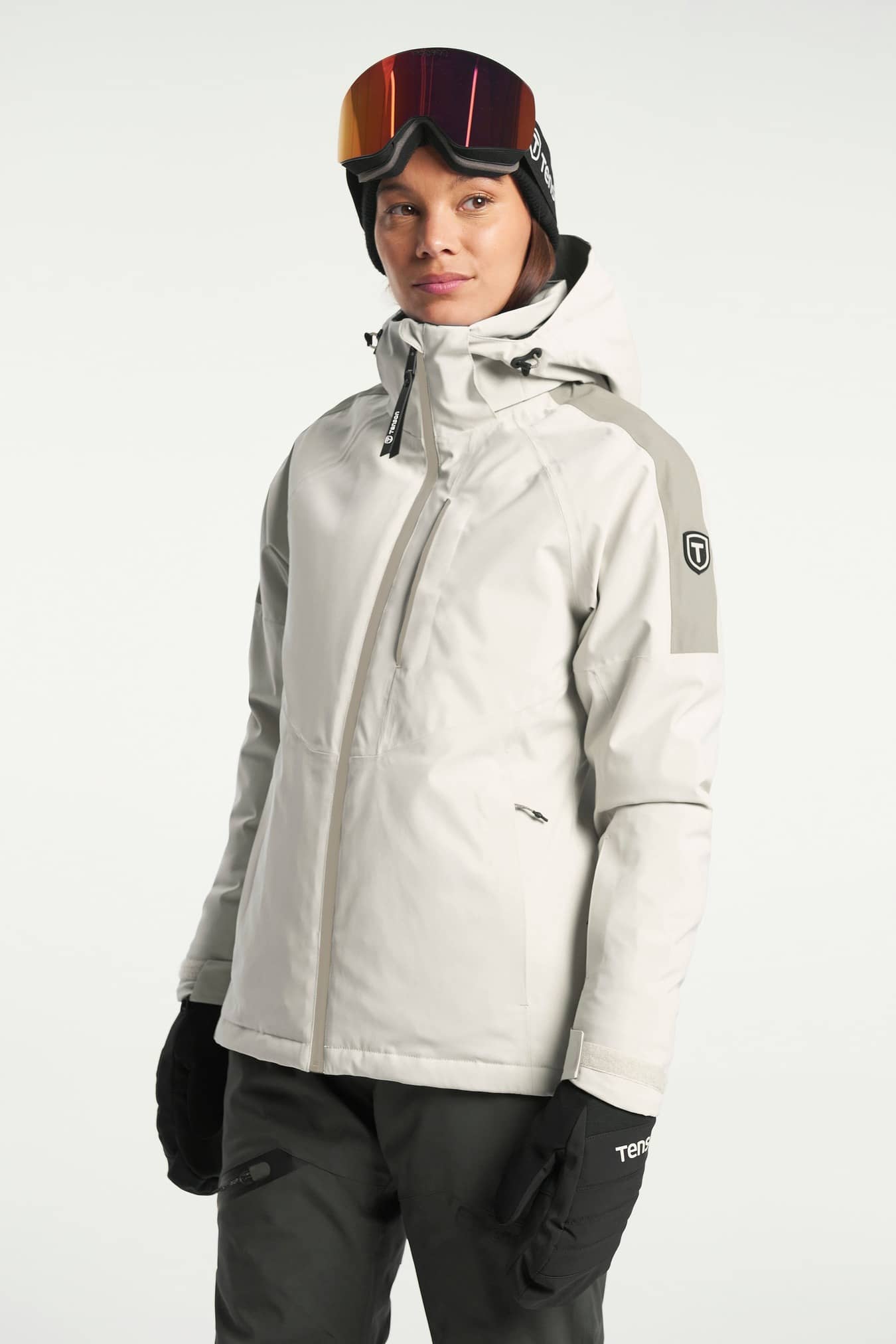 Core Ski Jacket Women är utrustad med Tensons egenutvecklade MPC Plus-teknik (WP 10 000 mm / MP 10 000 g/m2/24 h) som kombinerar mycket effektiv vattentäthet med god andningsförmåga för att hålla dig bekväm i snöiga, blåsiga och våta förhållanden, både i fjällen och inne i stan. AirPush™-isoleringen ger effektiv fukthantering med bibehållen värme. Jackan har fleece på insidan av kragen och fickorna för att hålla dig varm. Det finns två fickor med dragkedja, en bröstficka med dragkedja och en innerficka med dragkedja för säker förvaring. Ärmarna, luvan och fållen är justerbara för perfekt passform och jackan har också ett snölås som skyddar dig mot kyla och snö. Den har E-dye polyesterfoder och en PFC-fri vattenavvisande yta.
