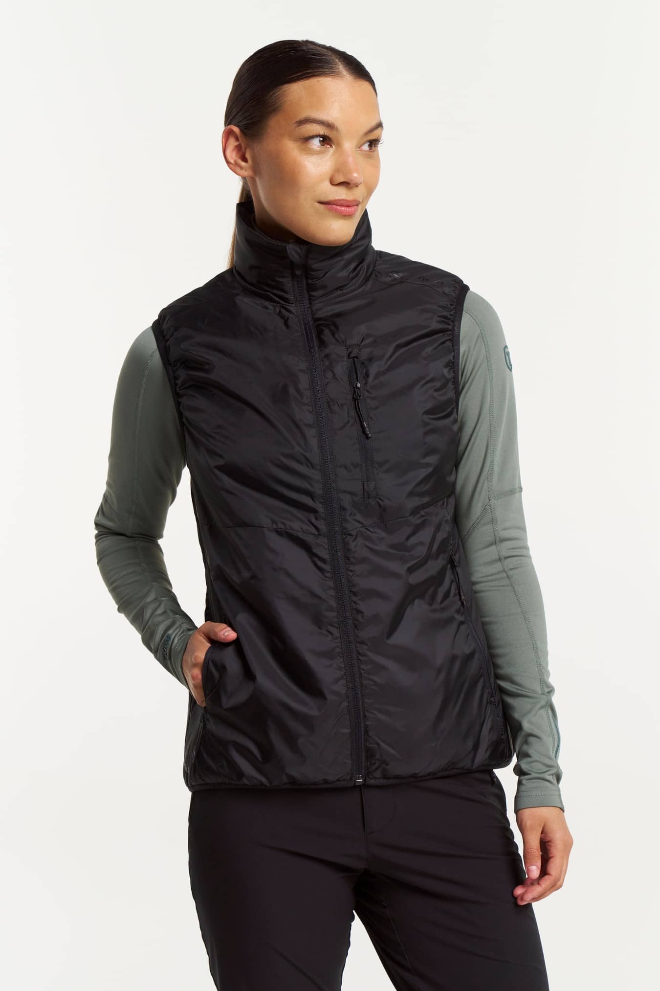 Lätt och mycket användbar pufferväst som är skön att bära året runt. Använd den som en fristående väst varje dag eller under din skaljacka som ett extra värmande lager när det behövs. Tillverkad av 100% återvunnen ripstop polyester som gör den väldigt hållbar. Den har en praktisk bröstficka med dragkedja och sidofickor med dragkedja för säker förvaring av dina tillhörigheter. Med en PFC-fri vattenavvisande ytbehandling.