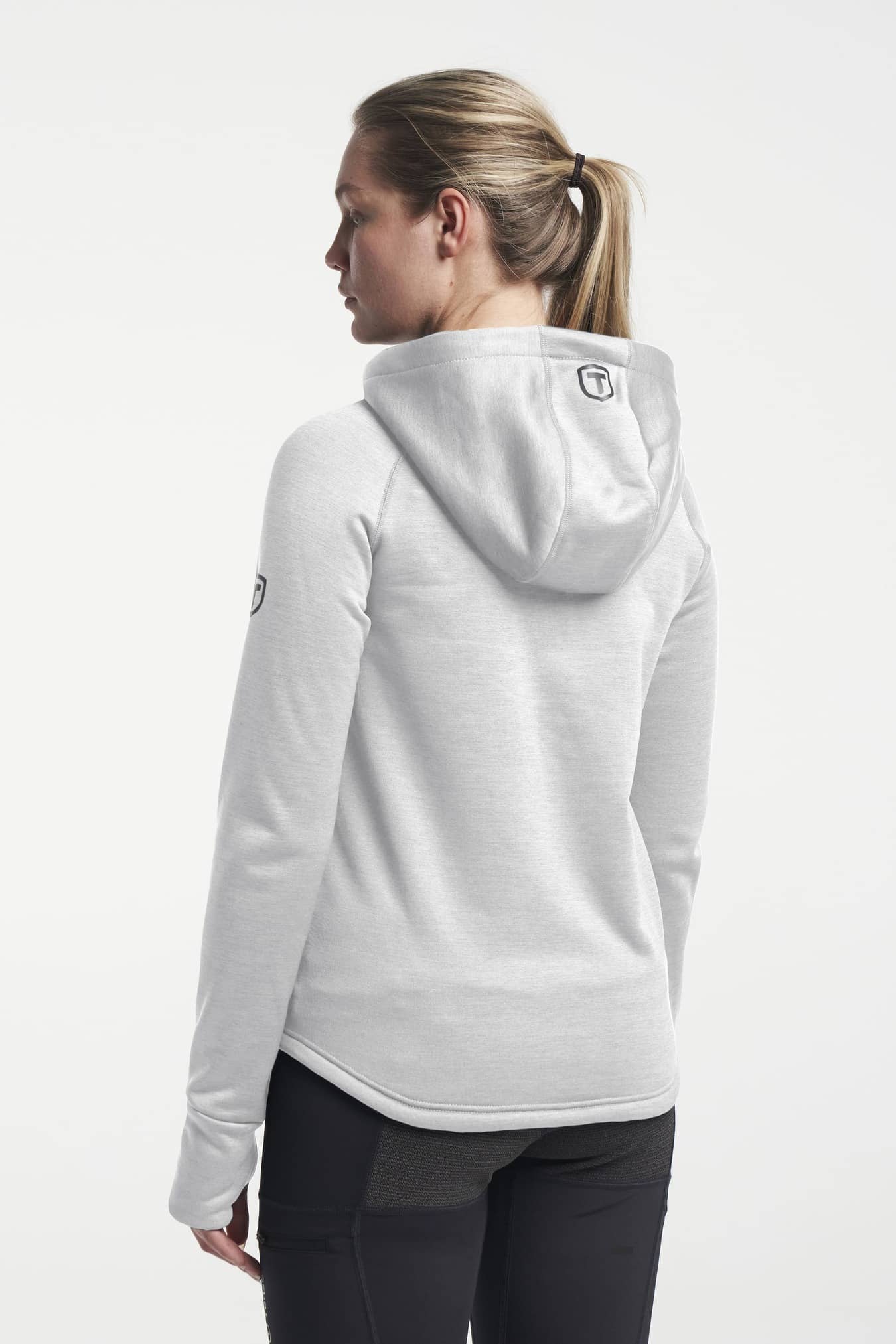TXLite Hoodie Zip är en huvtröja med dragkedja med perfekt passform för dam. Den är superstretchig och väldigt skön att ha på sig. Huvan och midjan är justerbara och dragkedjan har ett blixtlåsskydd för hakan. Om du vill använda den som mellanlager gör de förlängda ärmarna med tumhål att tröjan inte fastnar under jackan. Den har också två framfickor med dragkedja för att du inte ska tappa bort dina saker. Använd den som en bekväm hoodie eller som en lätt jacka i stan eller för utomhusaktiviteter.
